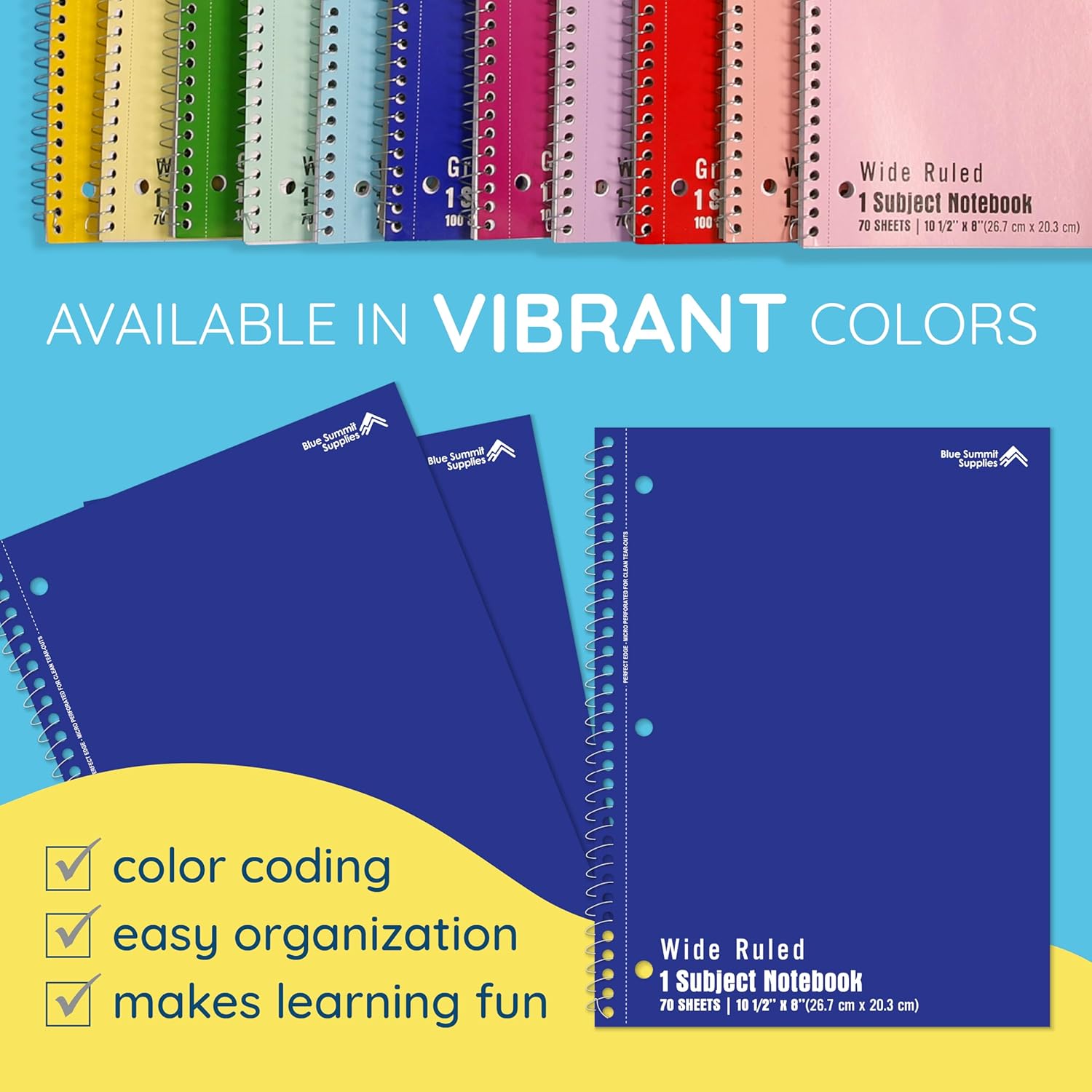 - Stay Organized by Color β With solid blue covers, these spiral notebooks wide ruled are ideal for sorting subjects, tasks, or studentsβgreat for school notebooks or work.