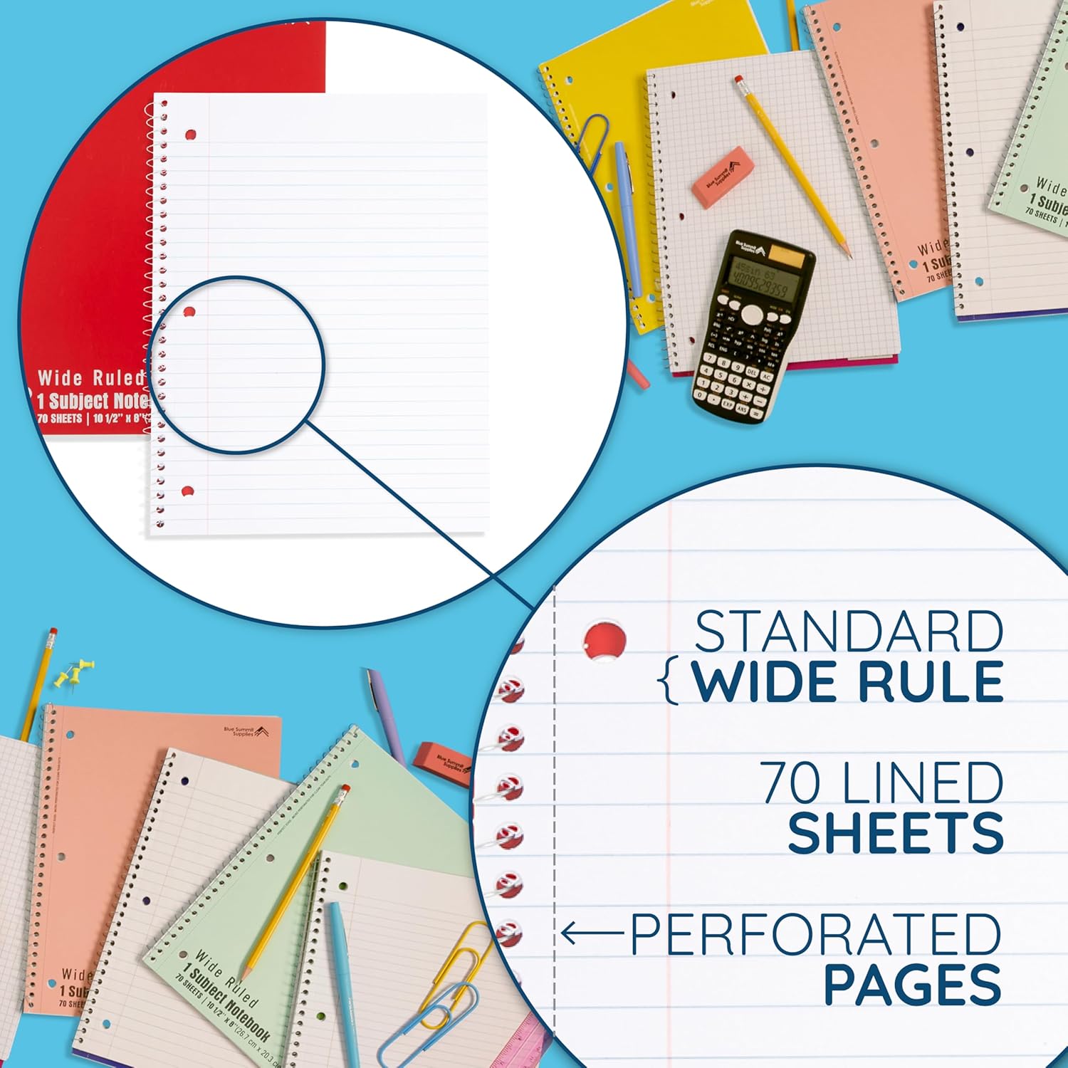 - Classic Wide Ruled Format β Each wide ruled notebook features spacious lines and durable spiral binding, great for students, teachers, or anyone who prefers wide ruled paper.