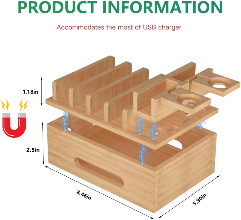 - Suitable for Multi Occasions: Made of bamboo, this charging station is sturdy and aesthetically pleasing, suitable for use in homes, offices and conference rooms, adding a touch of elegance to any space