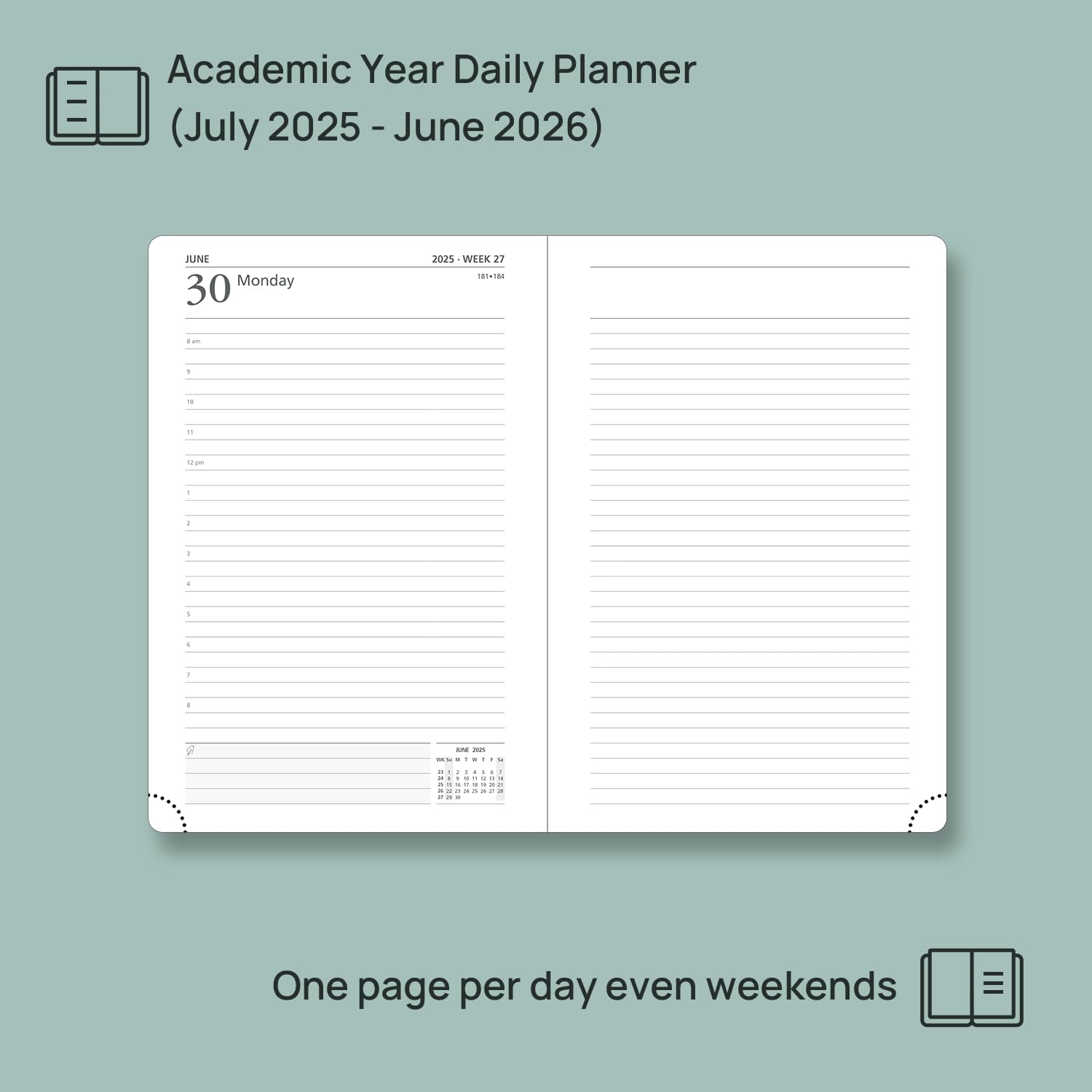 - ONE PAGE PER DAY, INCLUDING WEEKENDS - This daily planner (July 2025 β June 2026) offers 365 daily pages, each with ample space for hourly scheduling. It keeps your busy daily routines organized and manageable.