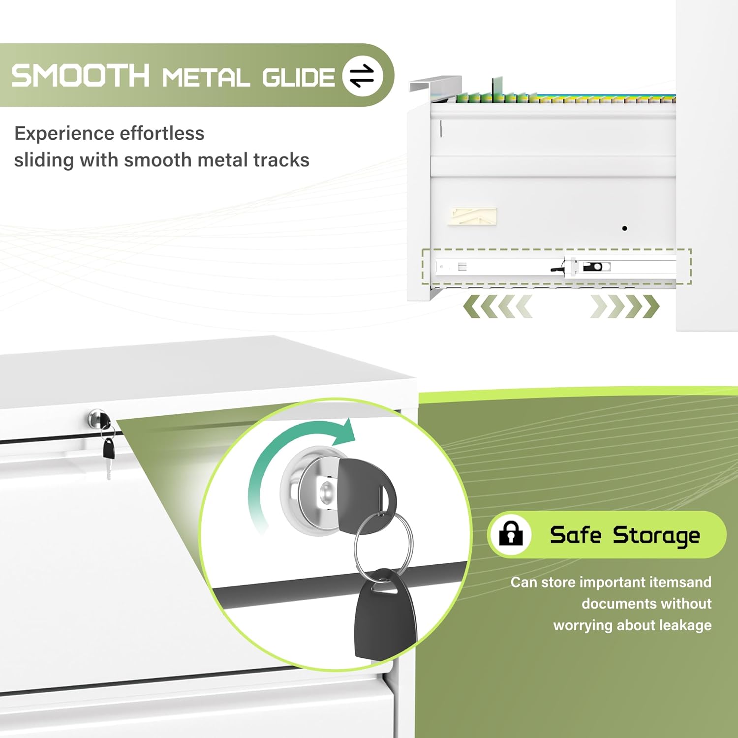 - ăHigh securityăTwo-drawer file cabinet with Lock is equipped with a built-in interlocking system to ensure drawer security. One locks with two keys ensures that your files are safe and easy to manage. The cabinet with drawers can be locked into two drawers at the same time with a lock, which is smooth and easy to operate.