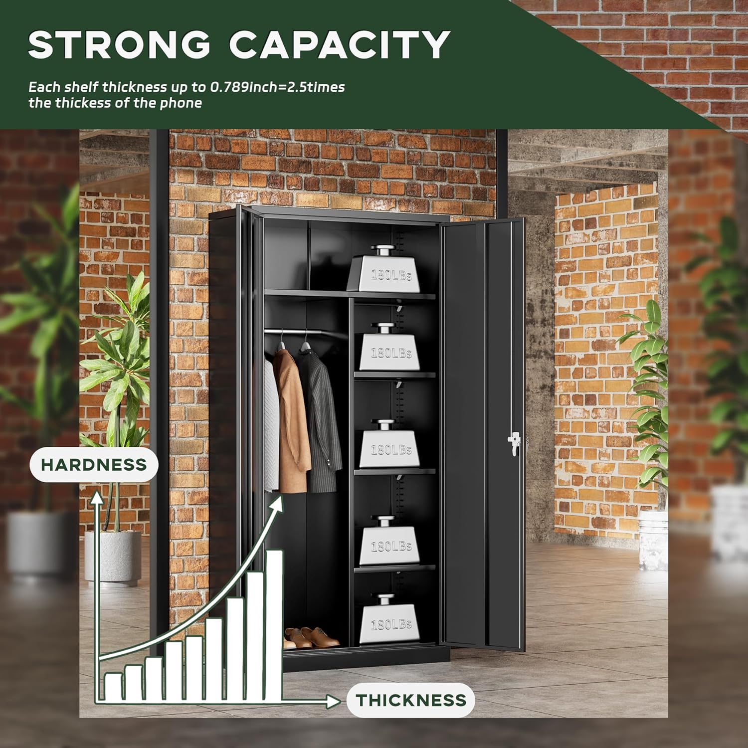 Greenvelly Metal Wardrobe Cabinet with Locking Doors, 72"H Black Metal Wardrobe Closet with Hanging Rods and Adjustable Shelves, Clothing Storage Closet for Home, Office, Employee, Gym (18" D x 36” W)