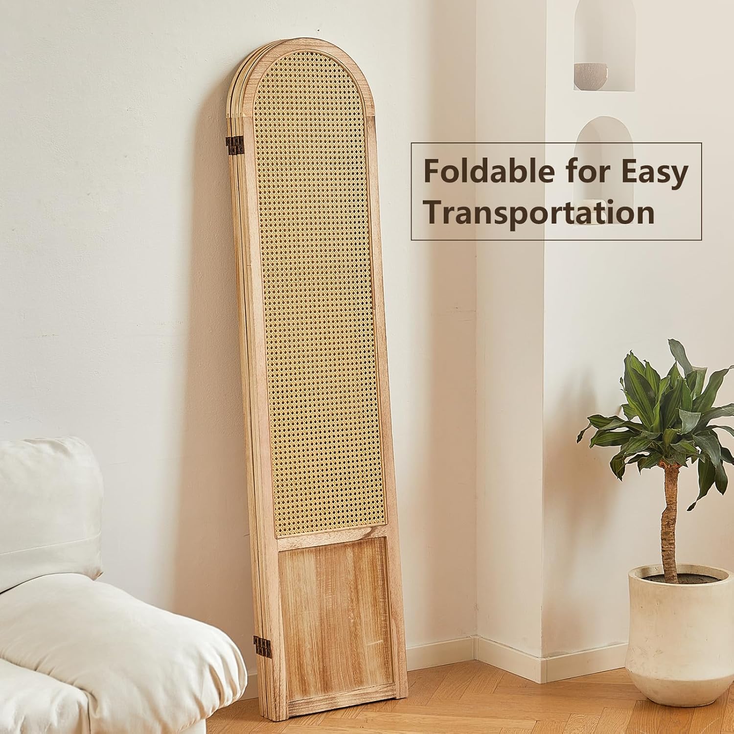 4 Panel Rattan Room Divier, Room Divider Panel and Folding Privacy Screens, Room Divider Wall, Solid Wood Frame, Partition Room Dividers, Bedroom, Dining Room, Lounge, Light Brown