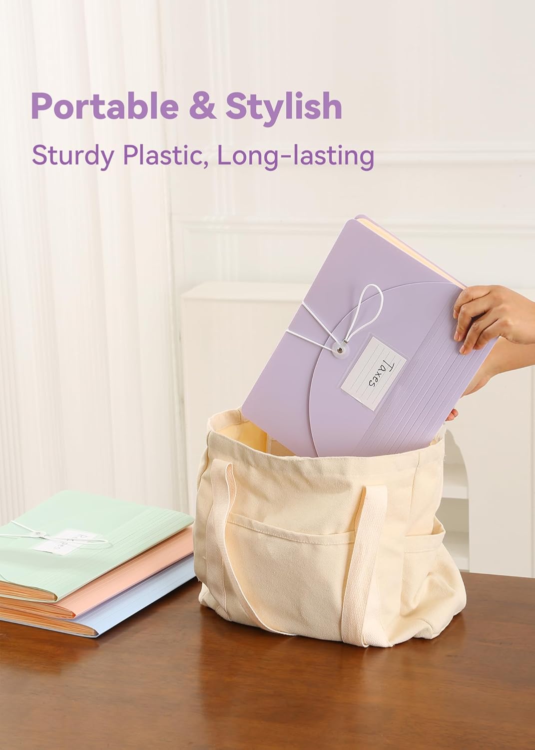 - Accordion File Organizer: Smoothly expands the top and bottom to hold more files, stays steady on your desk, and folds compactly for tidy storage in drawers or cabinets