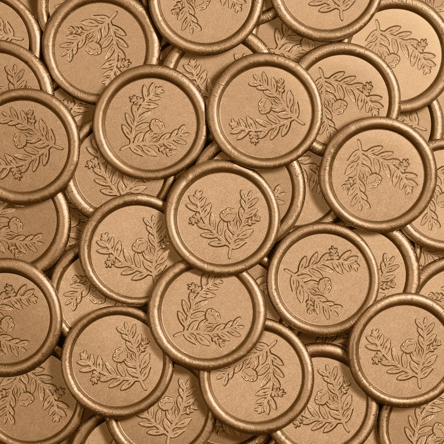 Handmade Wax Seal Stickers - Wedding Invitation Envelope Seal Stickers, 25 Pcs Self- Adhesive Stickers, Perfect for Invitation, Christmas, Gift Wrapping (Eucalyptus Style, Bronze Wax)