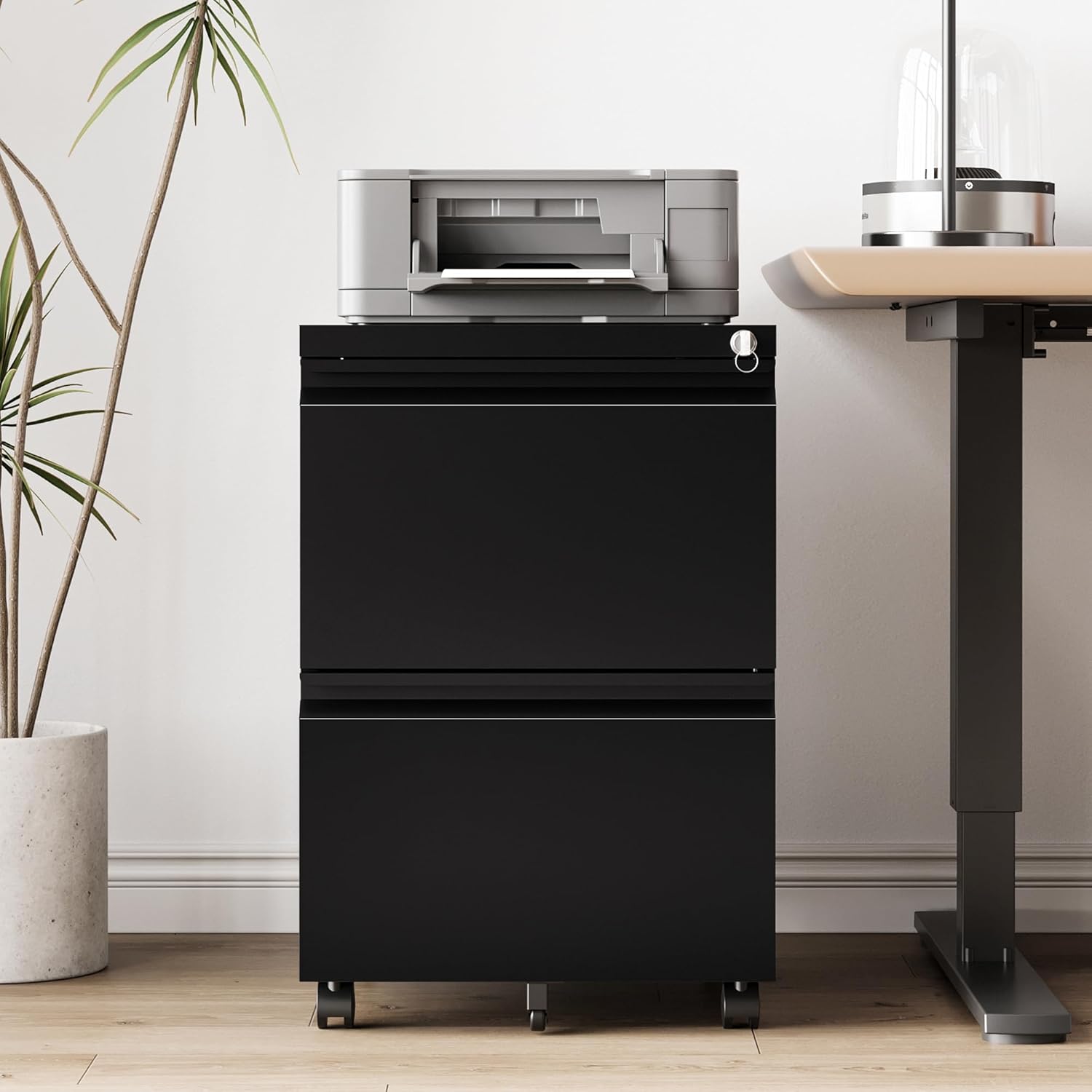 2 Drawer File Cabinet,Mobile Filing Cabinet with Lock and Wheels,Un-Assembled Metal Under Desk File Cabinets for A4/Letter/Legal Size(Black