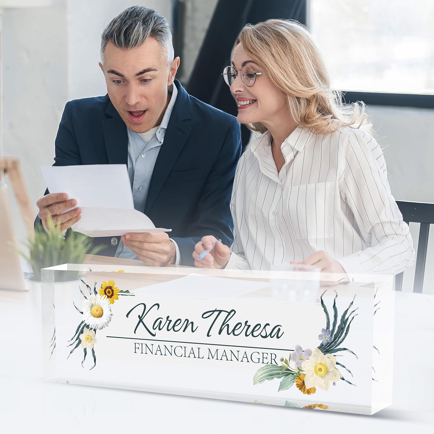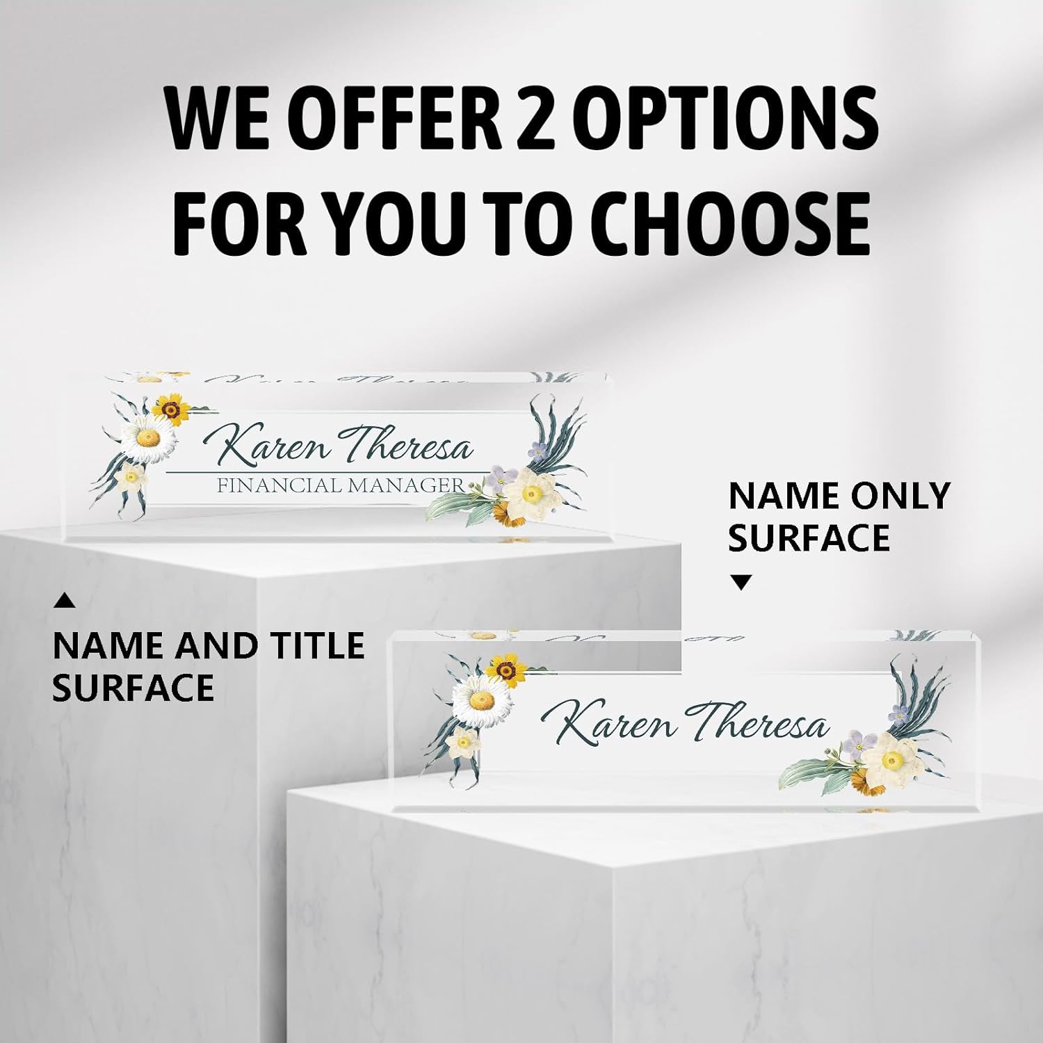 - 🍀 High Quality Acrylic - The name plate is made of high-quality transparent crystal acrylic blocks and printed on the back of the name plate using UV HD printing technology. The text and beautiful floral patterns present a 3D stereoscopic effect. The color is bright and will not fade, and can be used for a long time.
