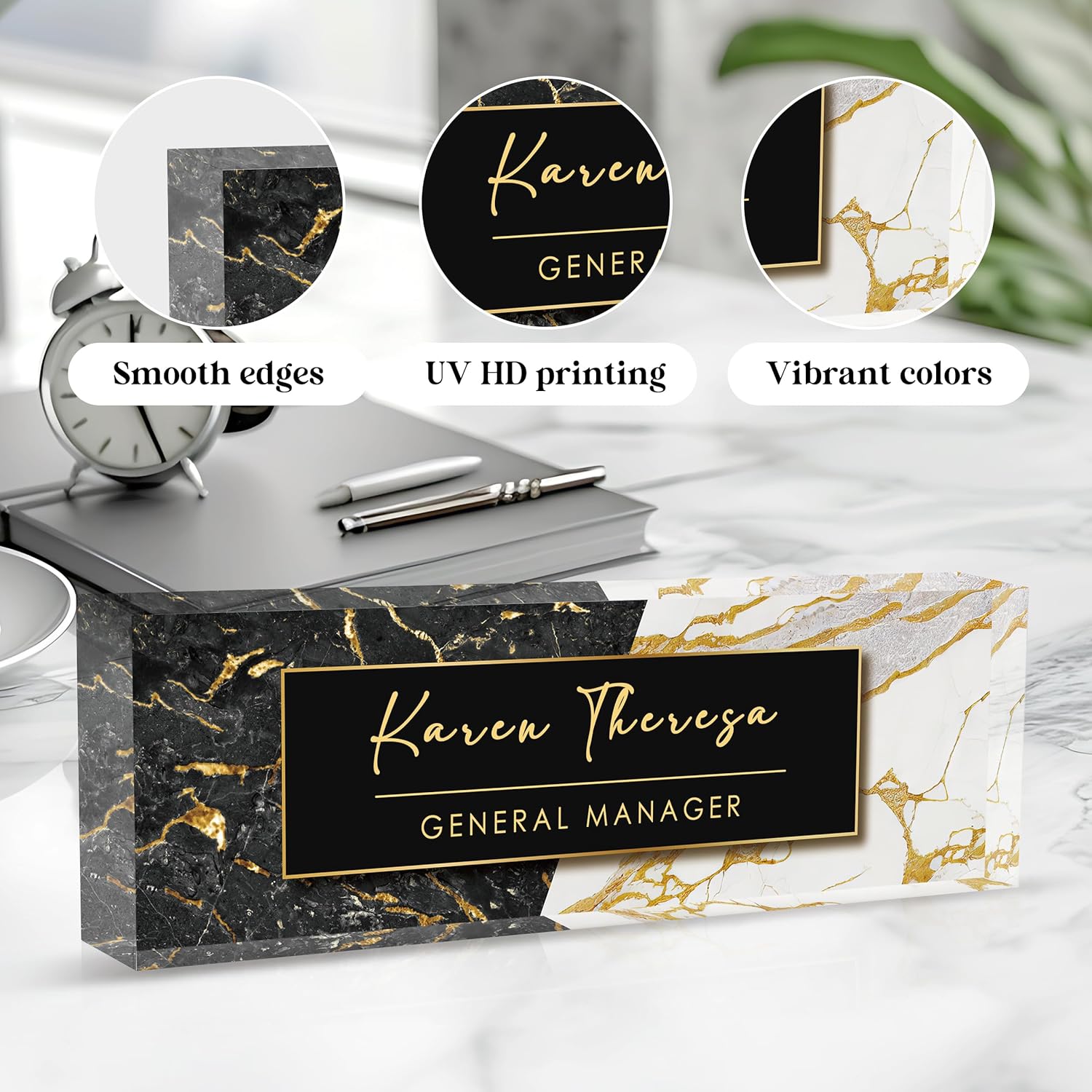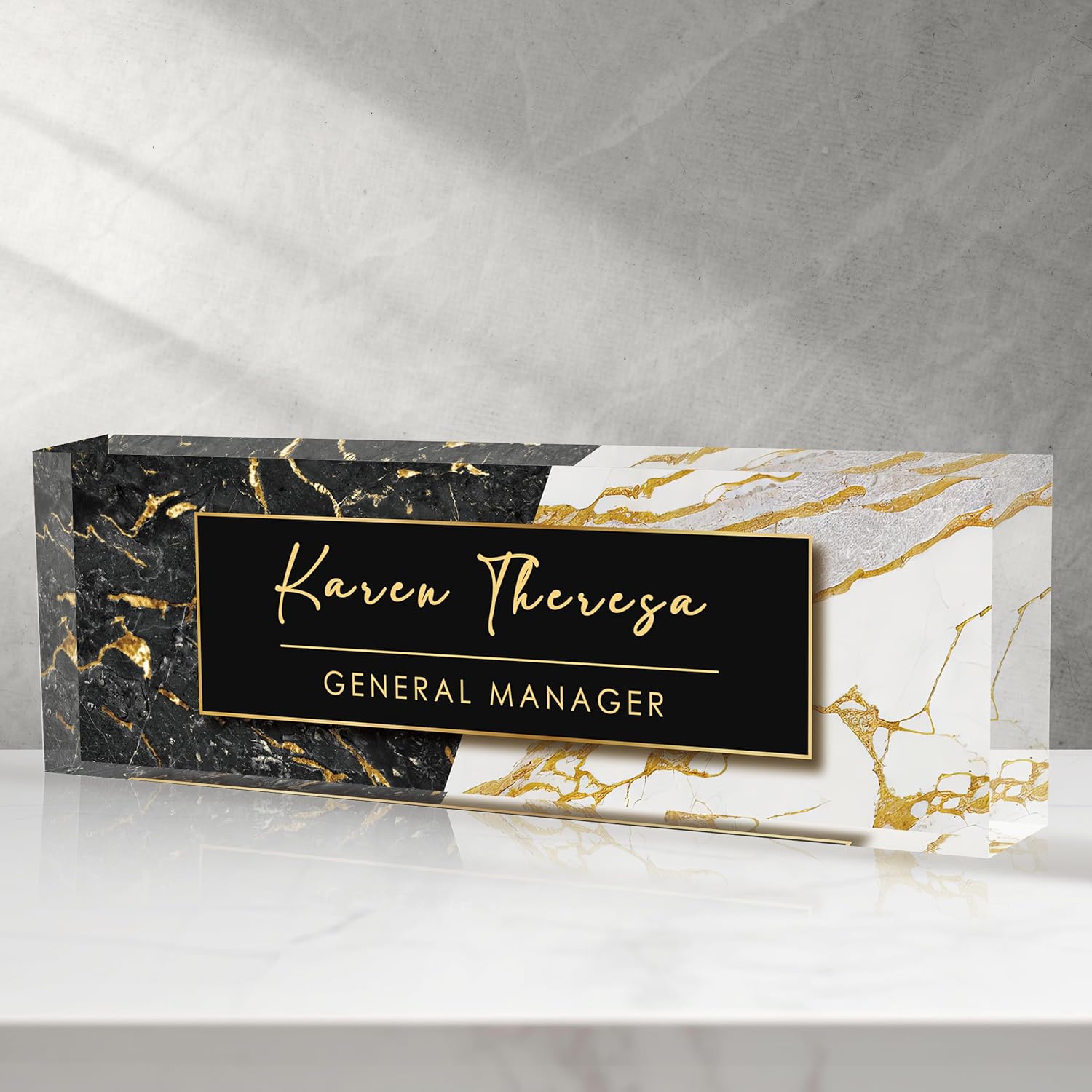 Custom Office Name Plate, Personalized Gifts for Men, Appreciation Gifts for Employee Coworkers Boss Teacher, Office Desk Accessory (Black Marble)