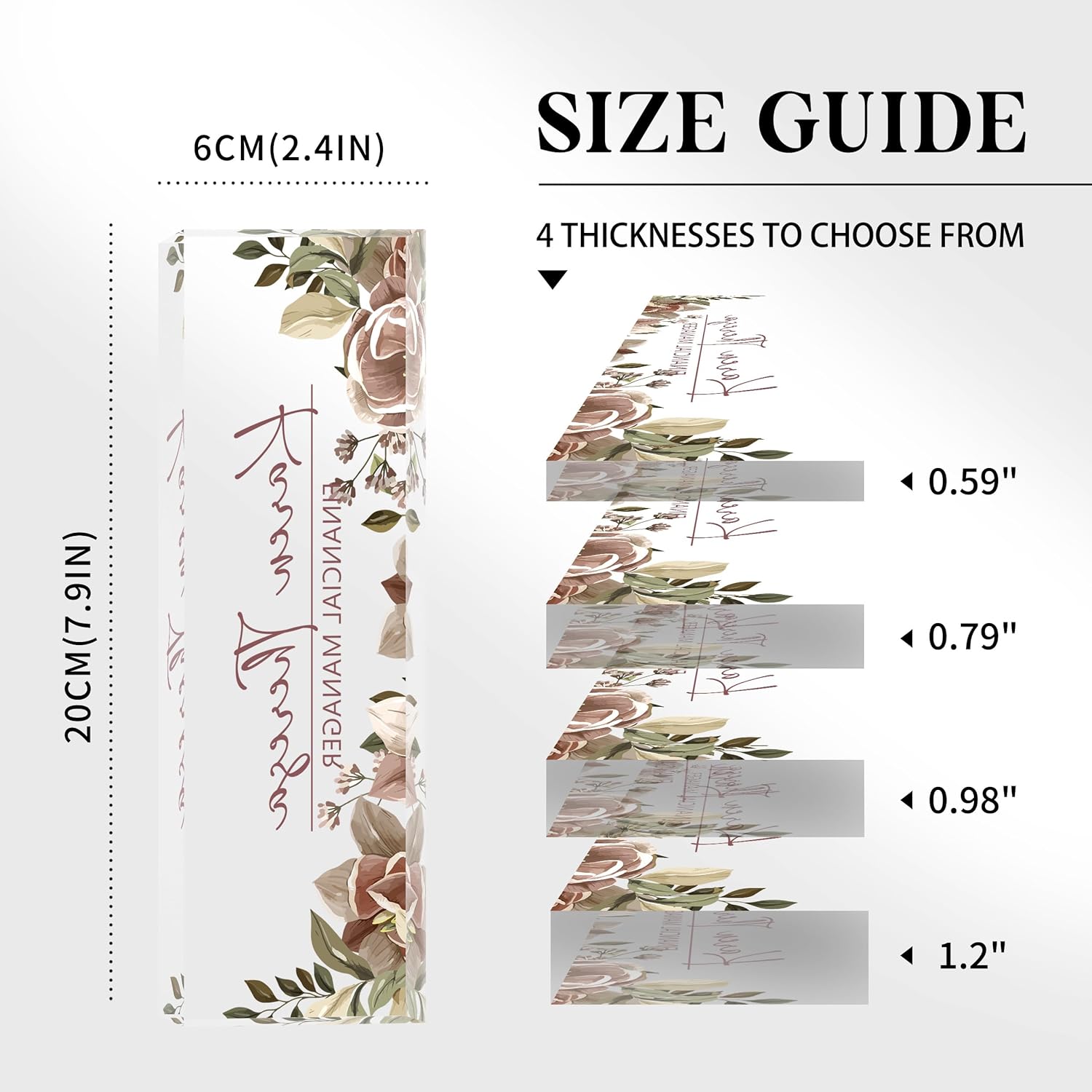 - 🍀 High Quality Acrylic - The name plate is made of high-quality transparent crystal acrylic blocks and printed on the back of the name plate using UV HD printing technology. The text and beautiful floral patterns present a 3D stereoscopic effect. The color is bright and will not fade, and can be used for a long time.