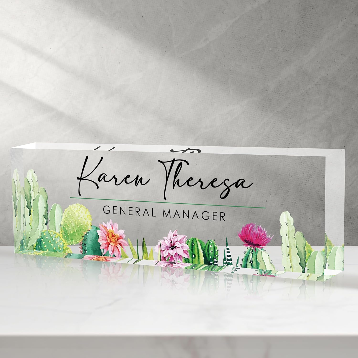 Custom Office Name Plate, Personalized Gifts for Women & Men, Appreciation Gifts for Employees, Office Desk Accessory (Cactus)