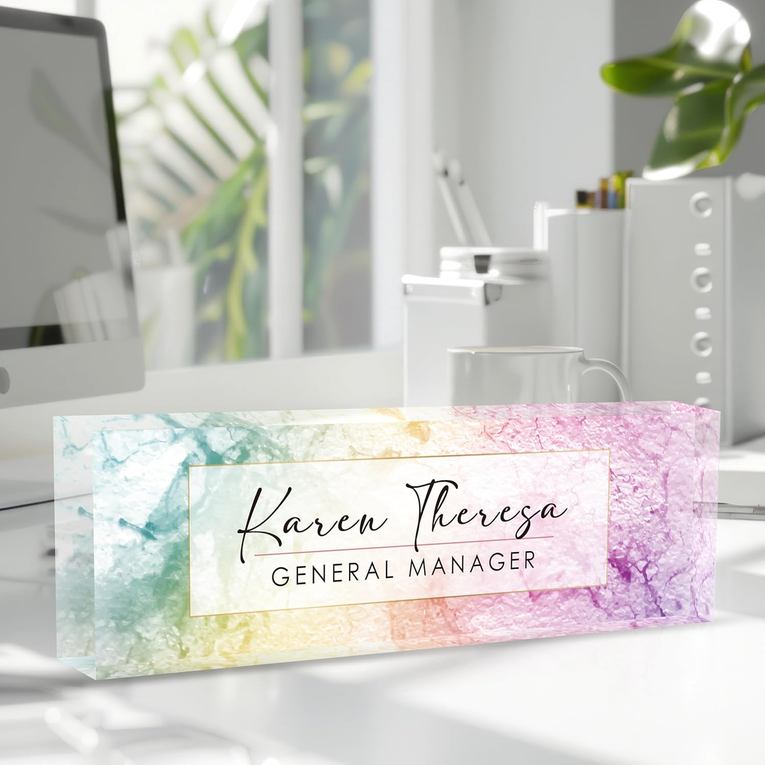 Custom Office Name Plate, Personalized Gifts for Women & Men, Appreciation Gifts for Employees, Boss, Teacher - Rainbow Texture Desk Accessory