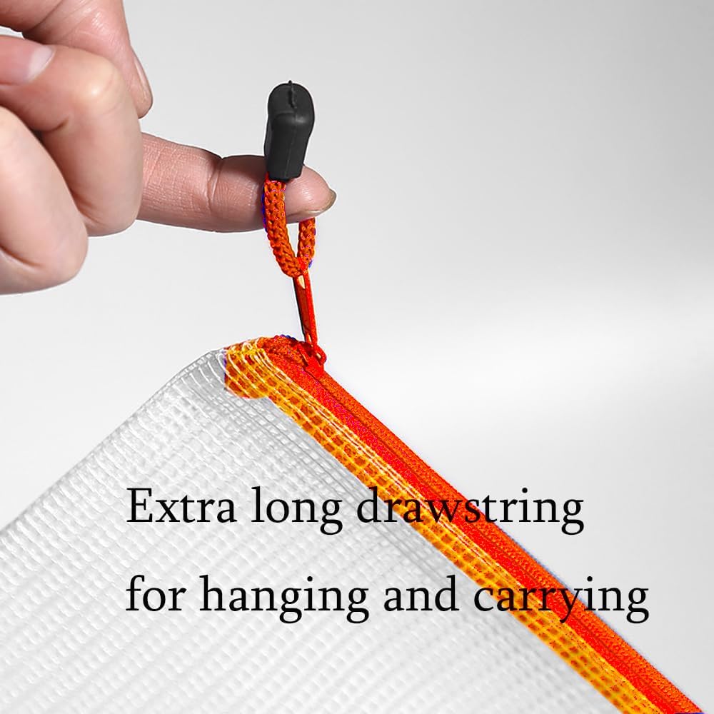 - QUALITY PVC: The mesh bag with zipper is made of PVC, safe and thick mesh, waterproof and moisture-proof. Protect your files from moisture, keep them flat and clear. Smooth metal zipper, strong and sturdy