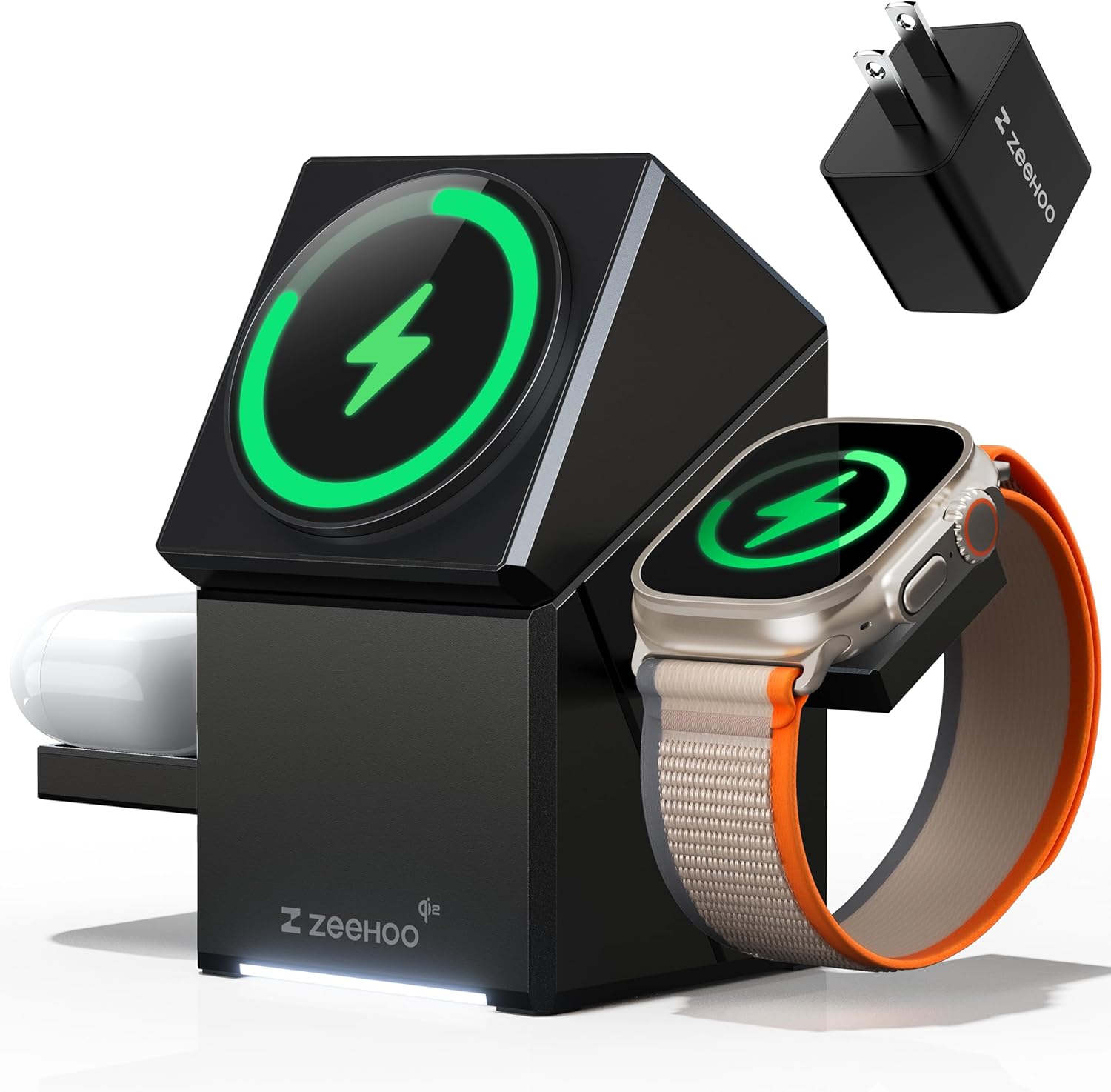 ZEEHOO iPhone Charging Station, 3 in 1 Charging Station for Apple MagSafe Charger, Qi2 Certified, 15W Fast Wireless Charger, for Apple Watch, for iPhone16 15,14,13,12 Series, AirPods (Black)