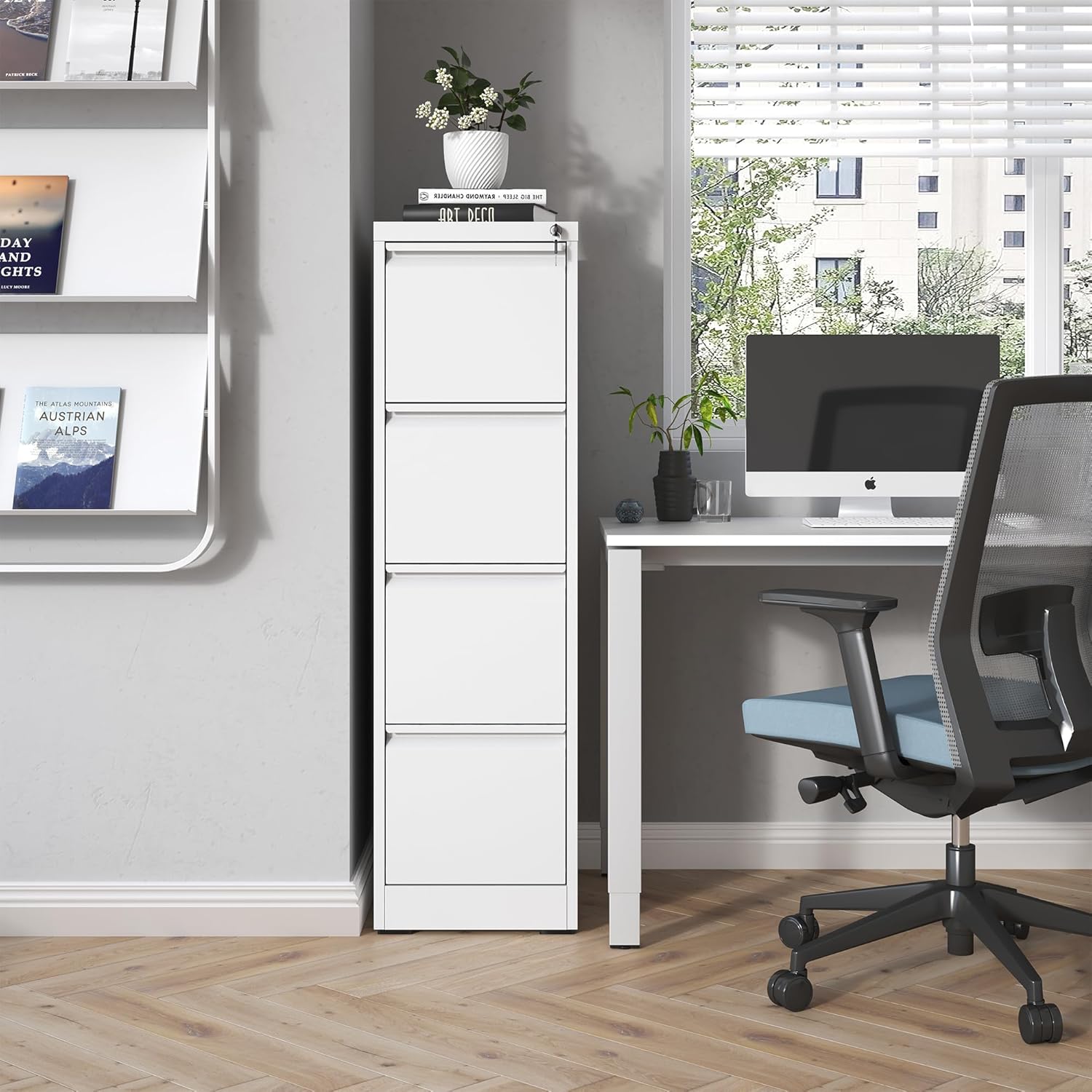 - 【4 Drawer Full-Extension File Cabinet】The slender rectangular silhouette with a clean white finish, this file cabinet is not only a practical storage solution but also adds a stylish touch to any home or office setting. Suitable for office, study room, bedroom, living room, etc.