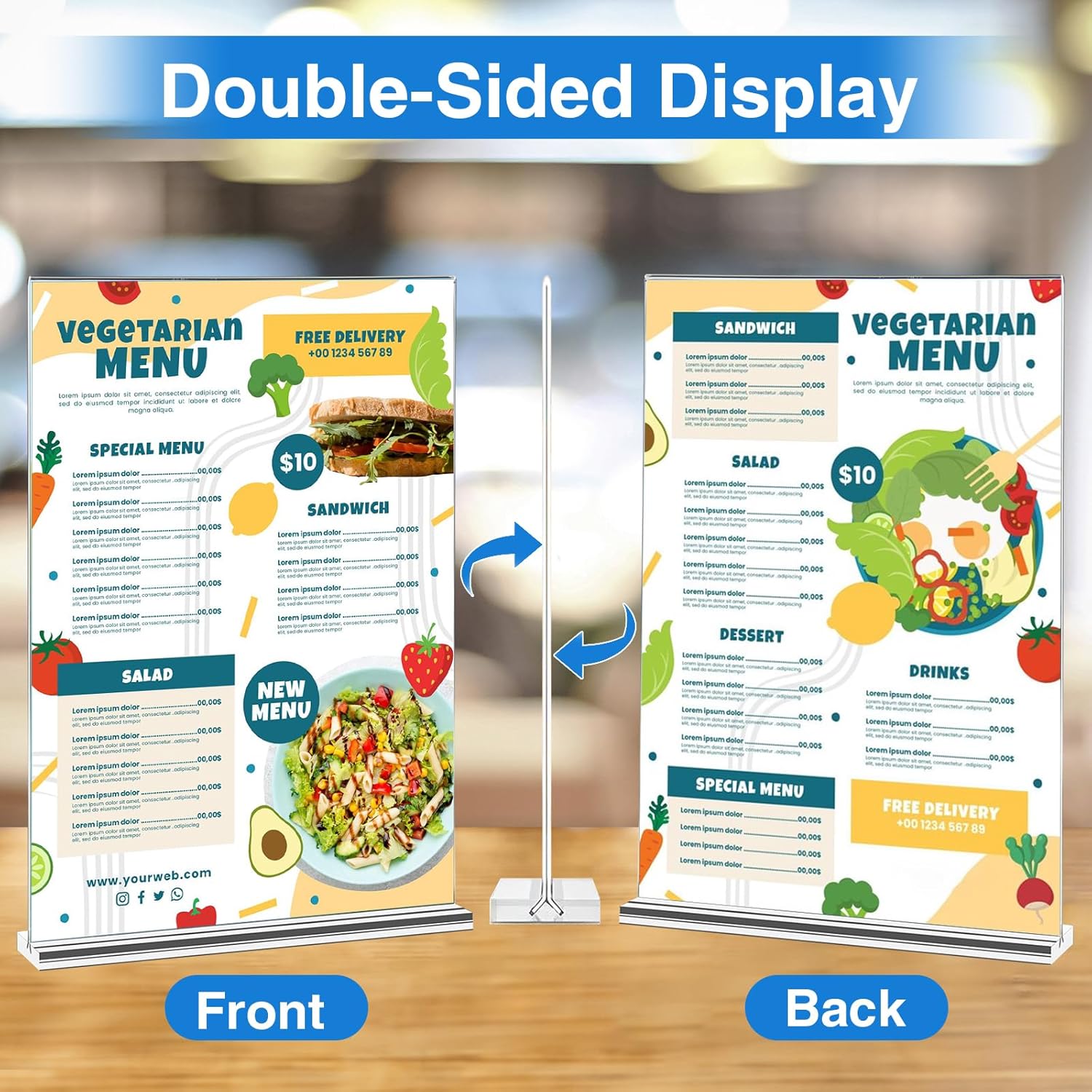 20 Pack Acrylic Sign Holder 4 x 6 Clear Display Table Signs Stand, Double Sided T Shape Flyer Holder Plastic for Picture Paper Frame Holder Home Office Menu Retail Show Fair