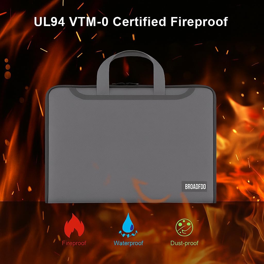 - Durable, Portable, & Built to Last Crafted with premium silicone fiberglass for fire and heat resistance, Broadfdo features a reinforced handle, double zipper closure, and dust-proof exterior. Its lightweight, compact design is perfect for school, business, travel, or daily file storage.d.