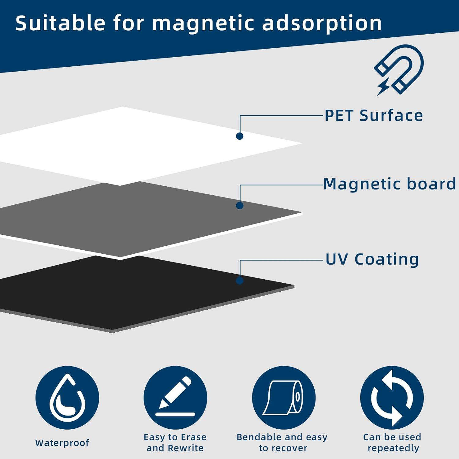 - Cutable Craftsmanship: The magnetic dry erase whiteboard stickers are strong and flexible, and there is a grid on the back of the release paper for easy measurement and cutting. It can be easily cut into the required size with ordinary sharp scissors or utility knife, and can be pasted on the wall or other surfaces, providing your children with convenient wide writing. Magnetic whiteboard stickers improve communication by providing a visual way to share information