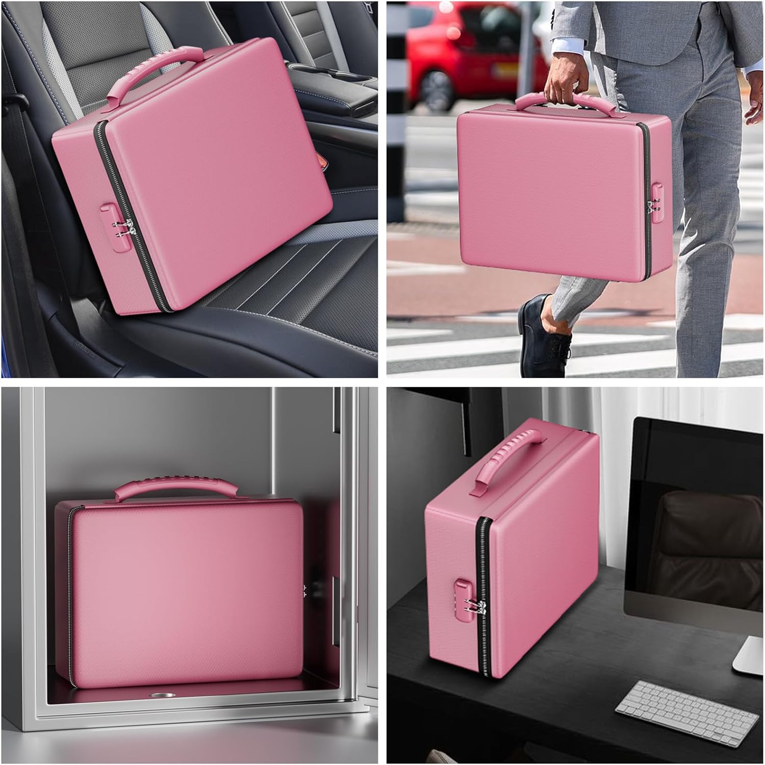 ENGPOW Fireproof Document Box, Hard Case File Box with Fireproof Zipper&Lock, 6400°F Heat Insulated Fire and Water Resistant File Organizer Storage Safe for Important Documents Laptop Cash, Pink