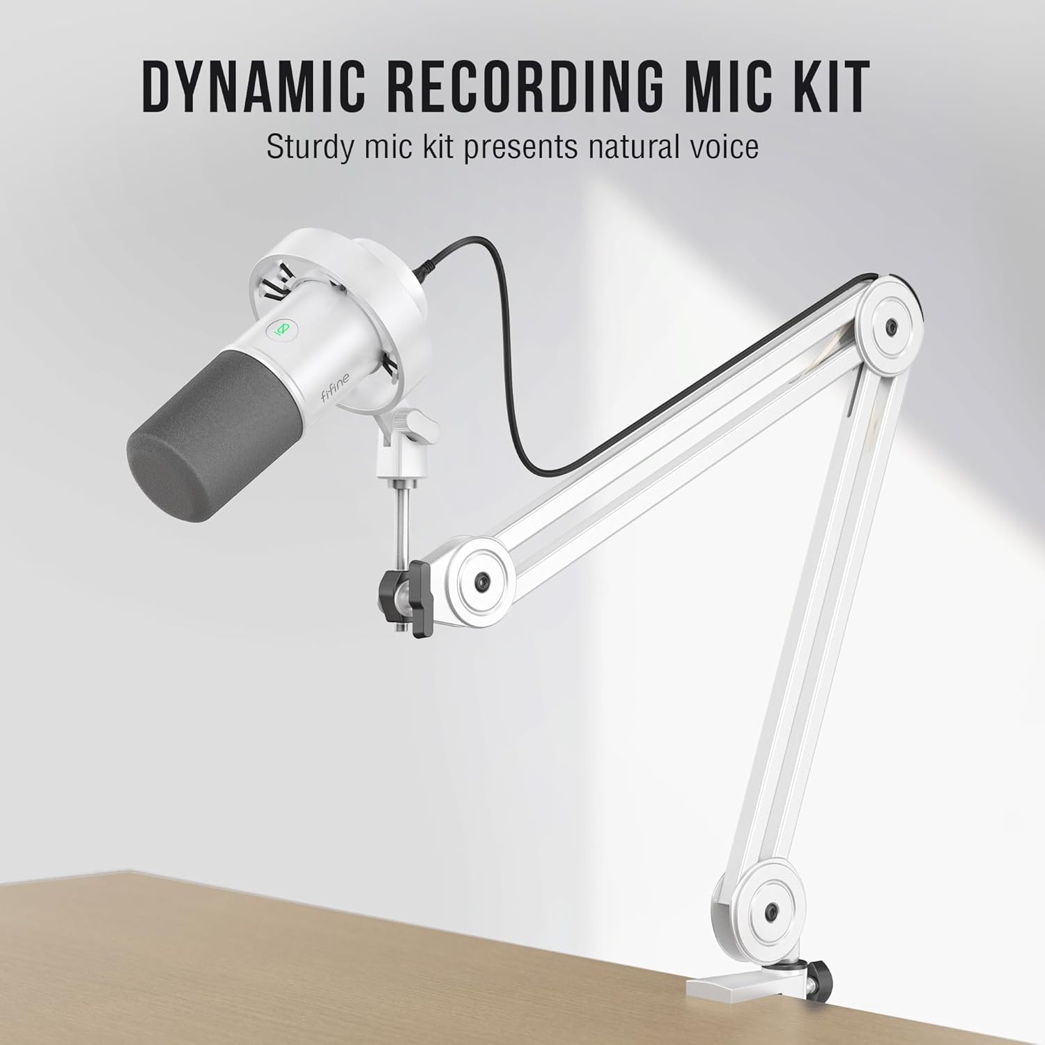 FIFINE Podcast XLR/USB Microphone Kit, Studio Dynamic Vocal Mic for Recording, Streaming, Voice-Over, PC Microphone with Boom Arm with Mute, Headphone Monitoring, Metal-AmpliTank K688T White