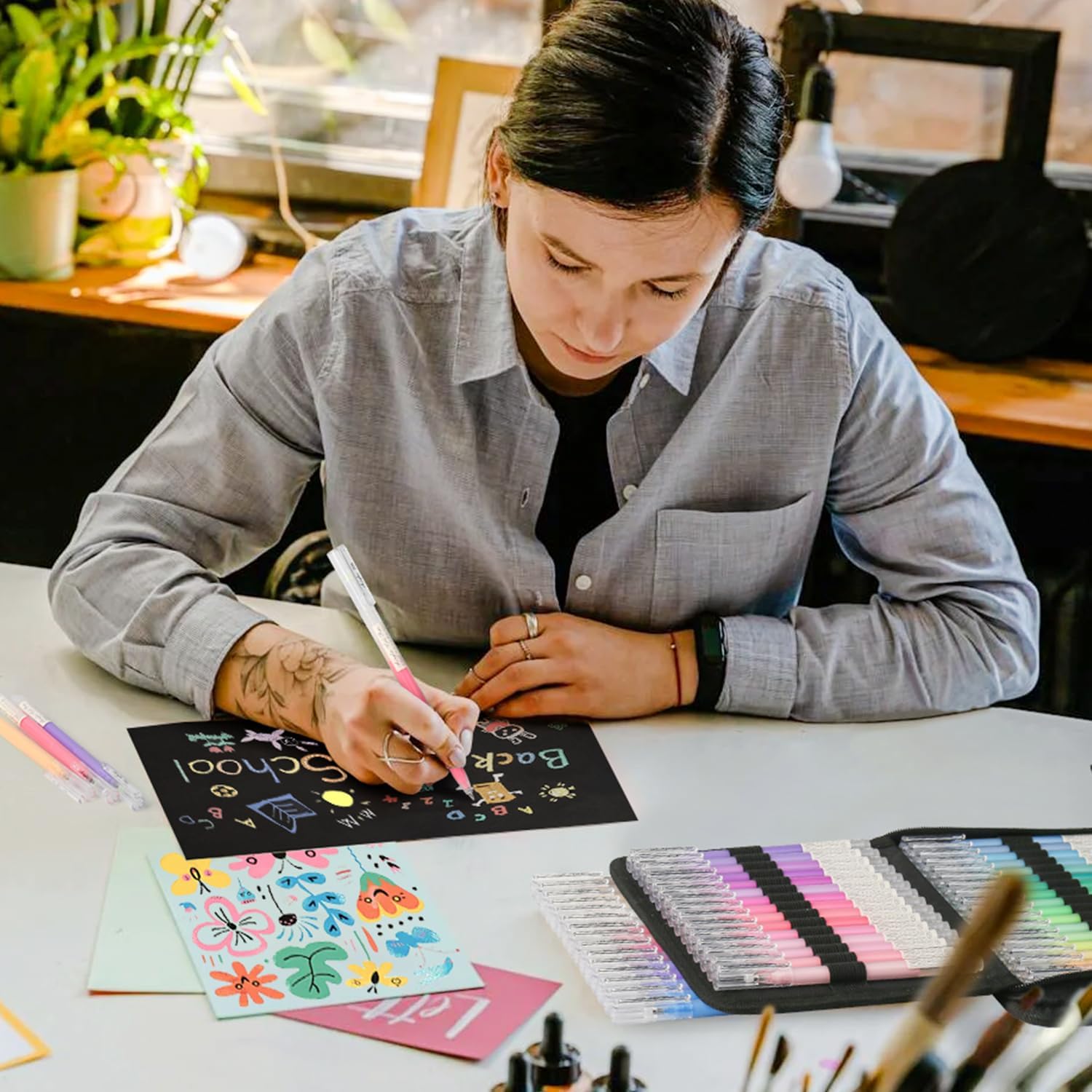 - Black Sketch Book & Gel Pen Art Kit: Our high quality 48 color 3D acrylic ink pens for black paper allow for smooth and effortless writing on black paper and card. Easily outline your painting and enjoy the ultimate creative experience. Expressing yourself in Zen painting on black books, so that your thoughts, contemplation, and black sketch are in sharp contrast.