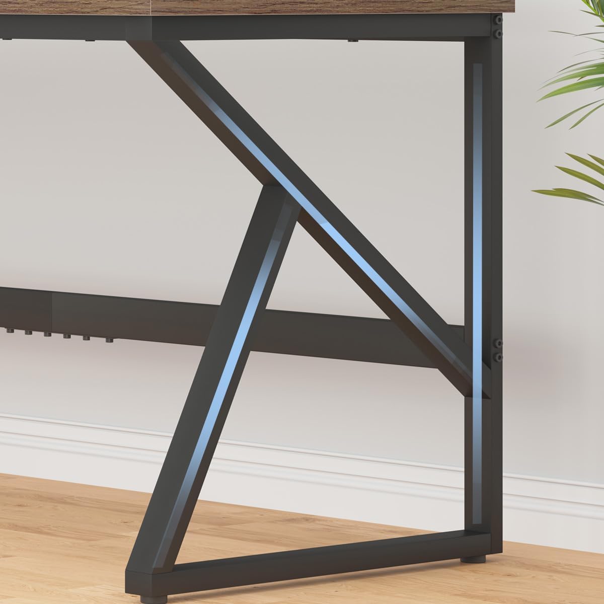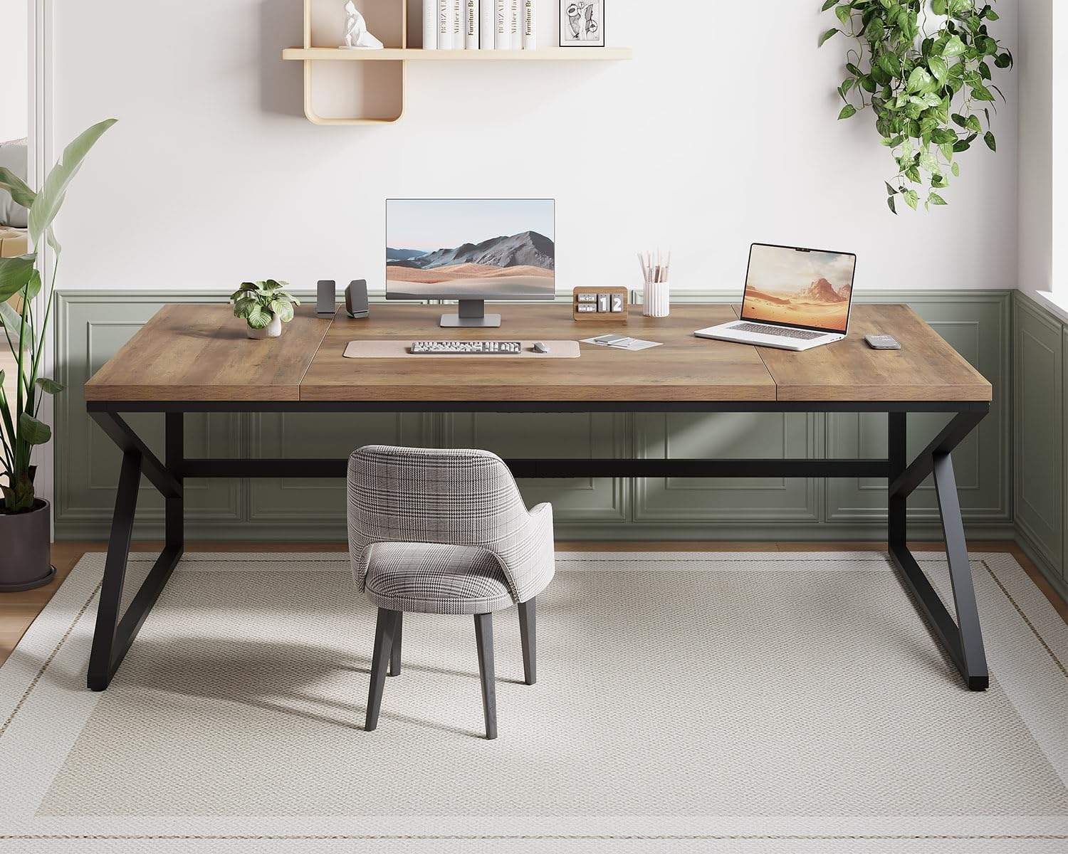 - ăSpacious Work Space & Leg Roomă: Measuring 31.5"D x 78.7"W x 30.0"H overall, this extra large home office desk offers ample space to accommodate multiple monitors, pc, laptop, printers, files, books, lamps and any other office essentials, ensuring you have everything you need within arm's reach for enhanced productivity. Featuring two K-shaped metal legs with an open structure, this long computer desk provides ample leg room, promoting comfort during extended periods of use.