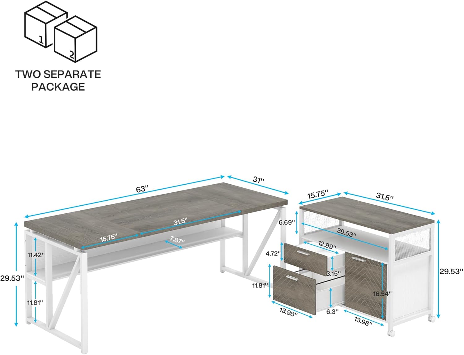 - Home Offices Furniture Set: 63 inches desk and 32 inch filing cabinet, you will love the versatility of having 2 pieces that can be put together for an l-shaped desk to extend your workspace or separate for a different look