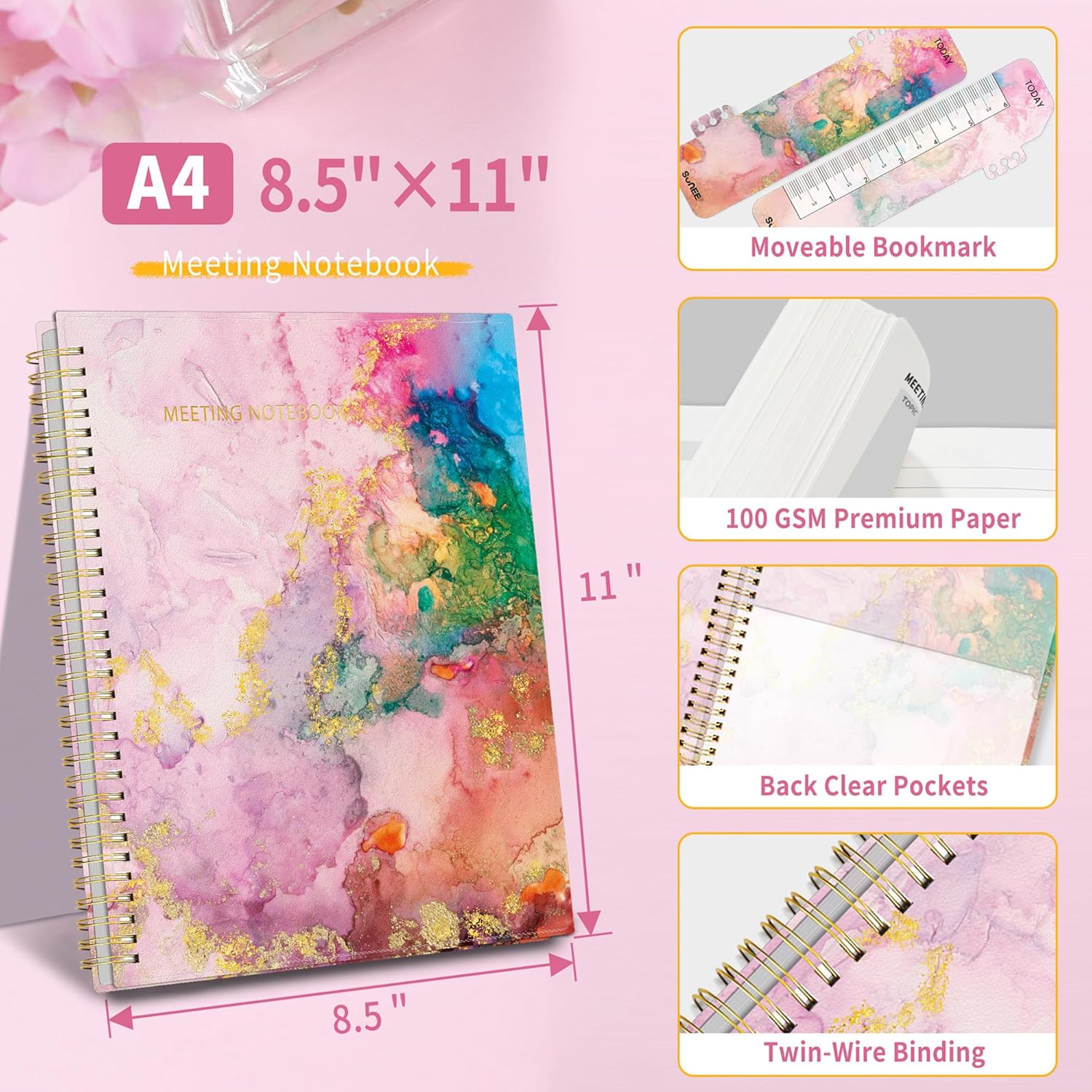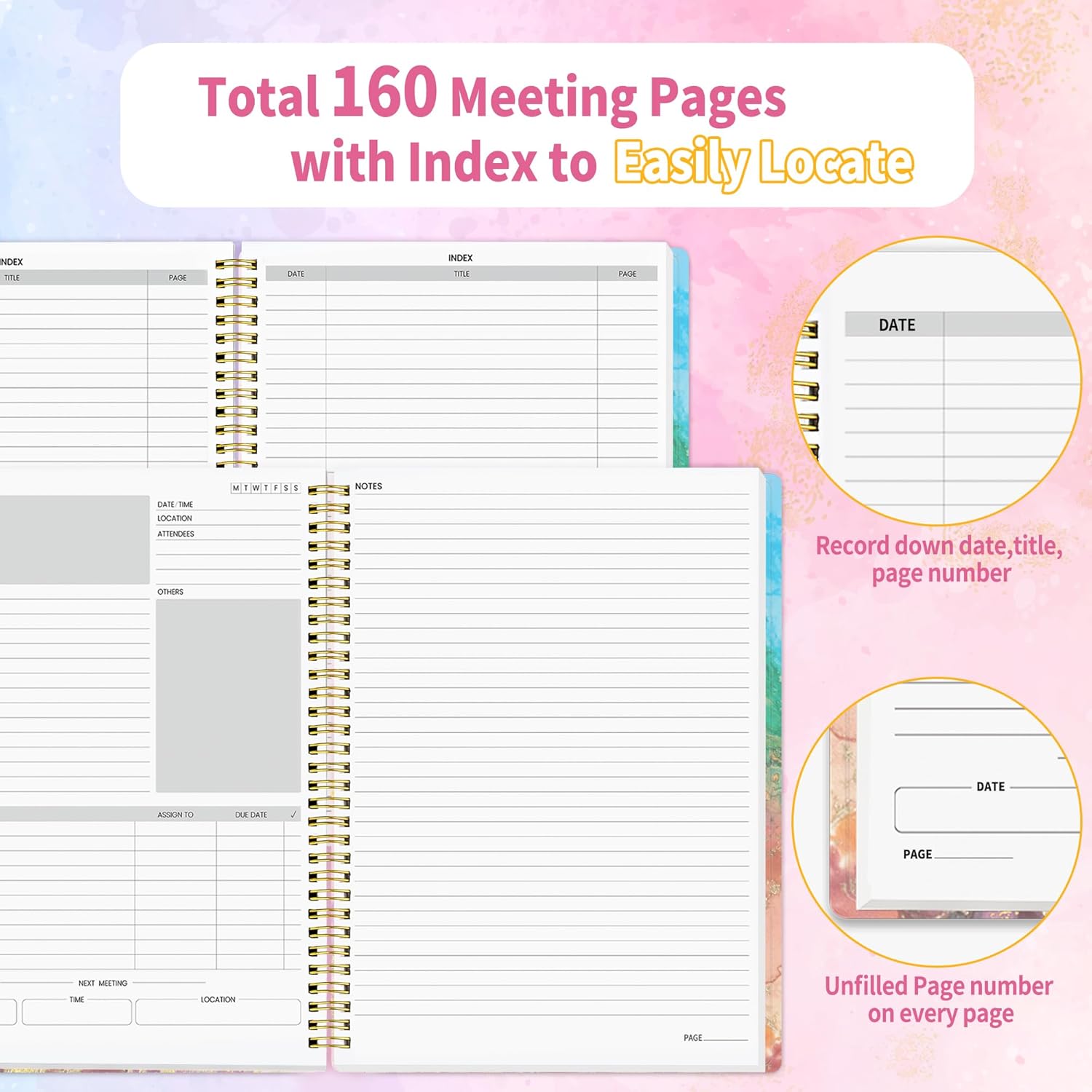 SUNEE Half Meeting Half Note - 8.5"x11" Professional Notebooks for Work - 160 Pages, A4 Size Project Planner, Spiral Meeting Agenda/Minutes Organizer for Women Men, Note Taking, Office & Business