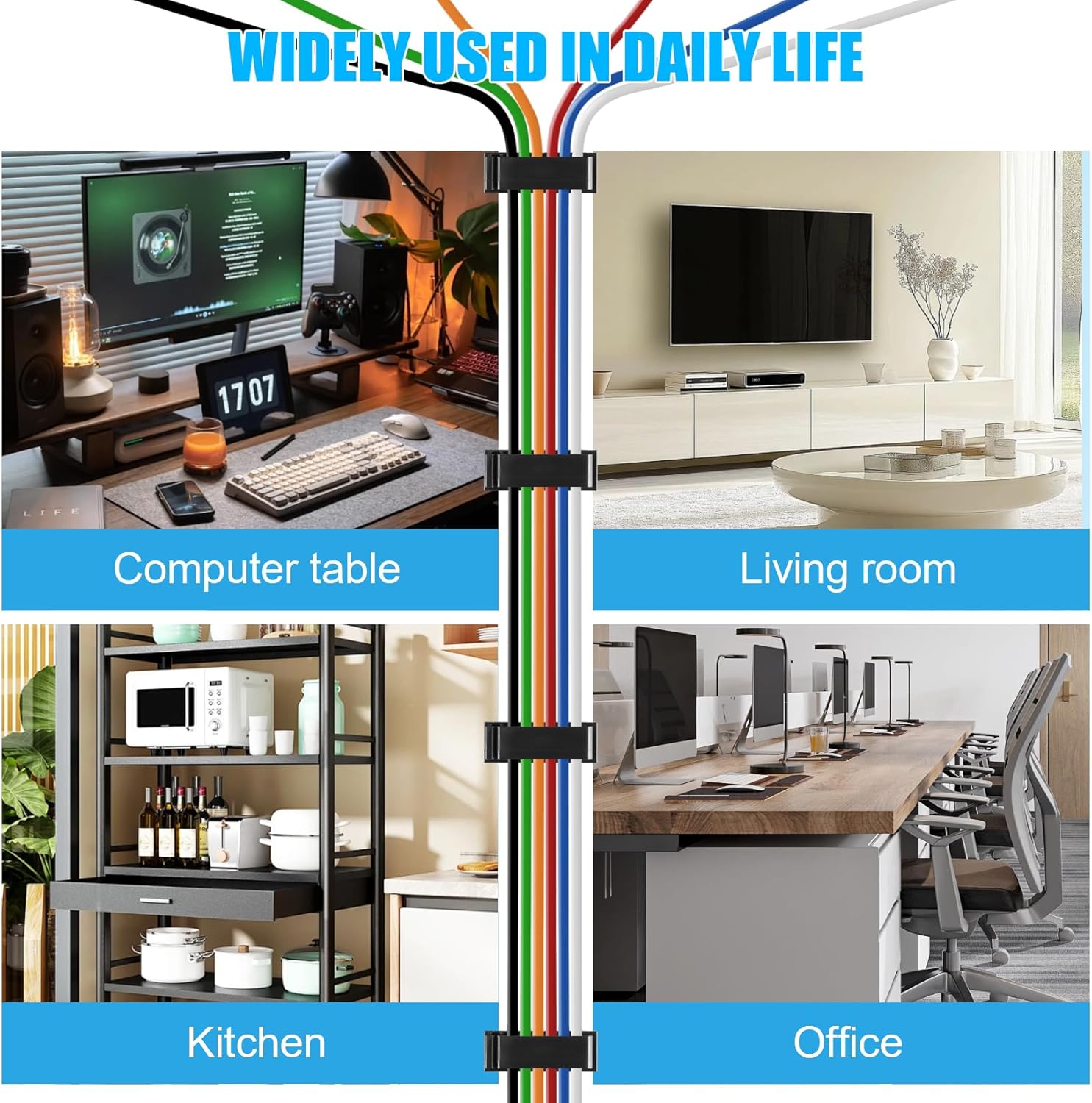 XHF 80 PCS Self Adhesive Cable Clips(XL) Black,Wire Clips Cable Management Wire Organizer Cord Holder for Under Desk, Car, Wall, TV PC Ethernet Cable