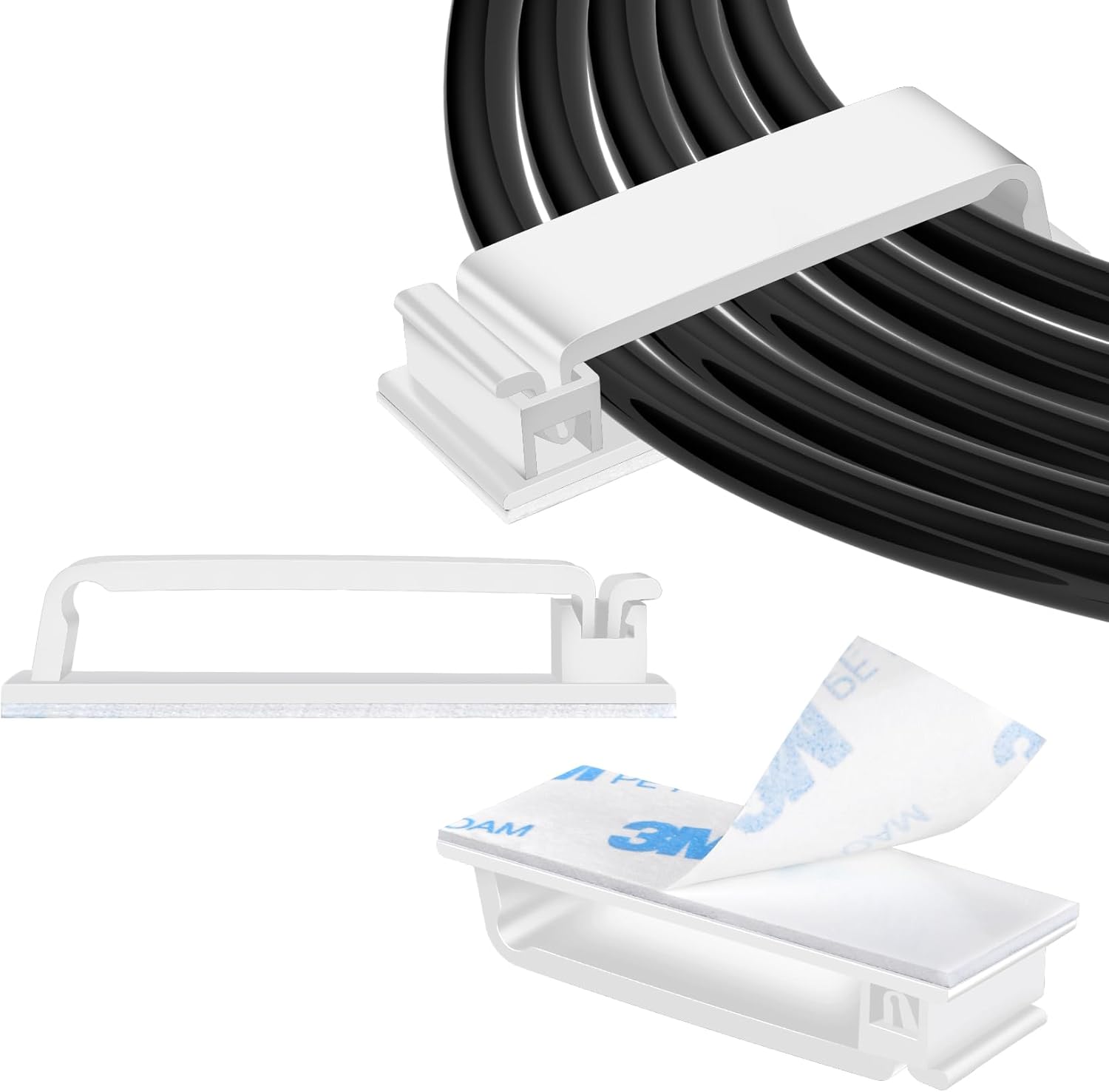 XHF 100 PCS Self Adhesive Cable Clips(L) White,Wire Clips Cable Management Wire Organizer Cord Holder for Under Desk, Car, Wall, TV PC Ethernet Cable