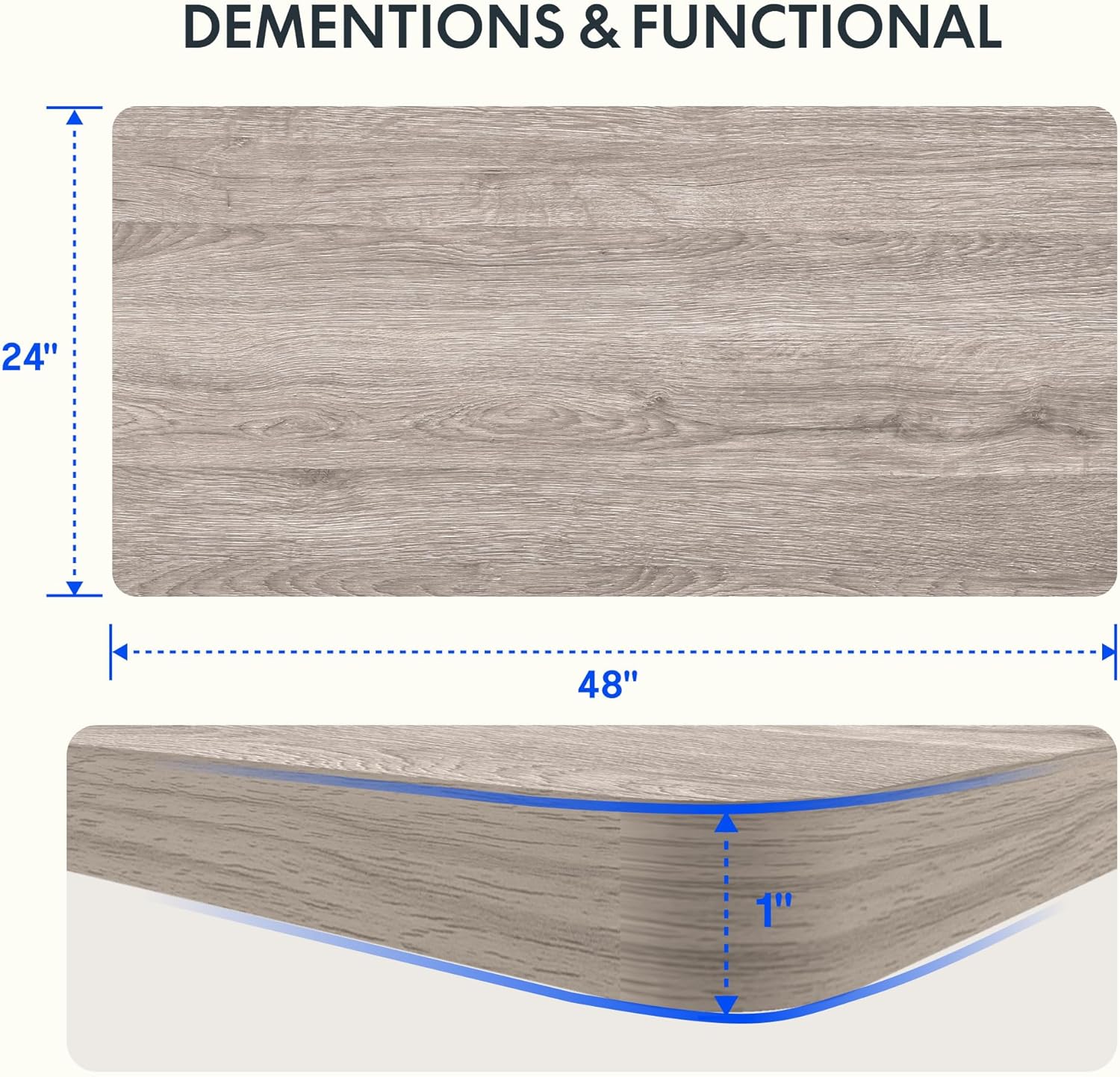 FLEXISPOT EN1 One-Piece Standing Desk 48 x 24 Inches Height Adjustable Electric Desk Sit Stand Desk Home Office Desks (White Frame + Gray Wood Grain Top, 2 Packages)