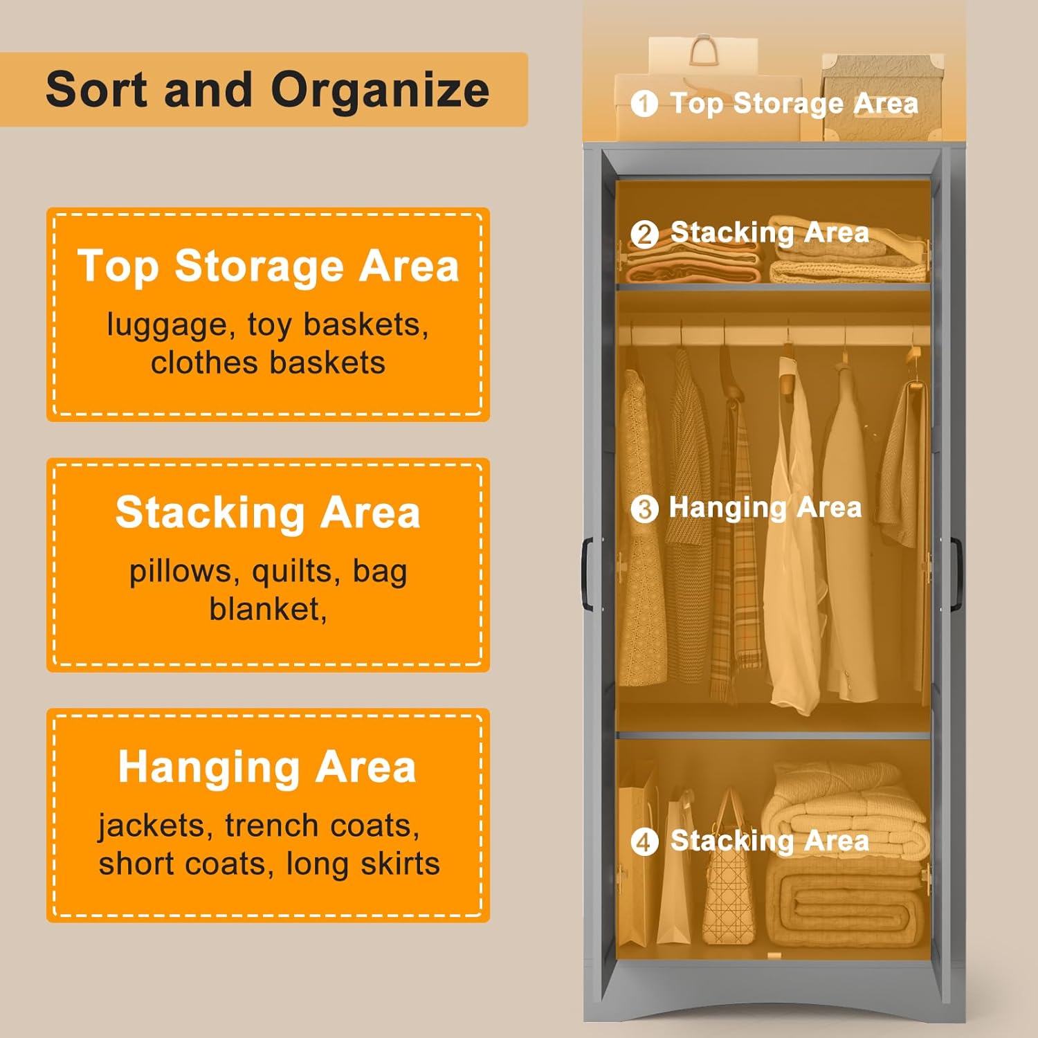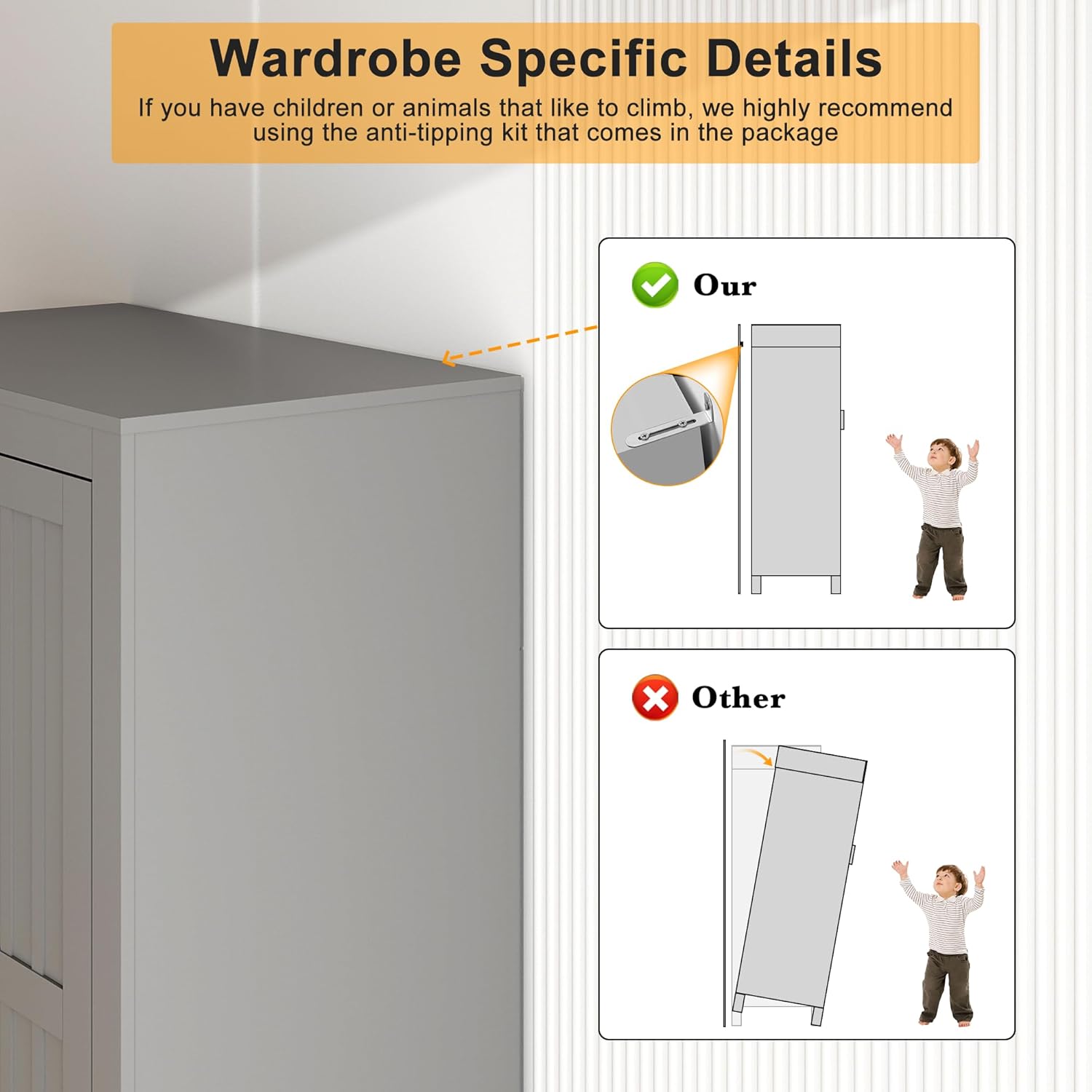 - Easy Assembly Process: The wardrobe closet with 2 door comes with clear, step-by-step instructions and labeled parts for a straightforward assembly. Youβll have your gray wardrobe cabinet set up and ready in no time