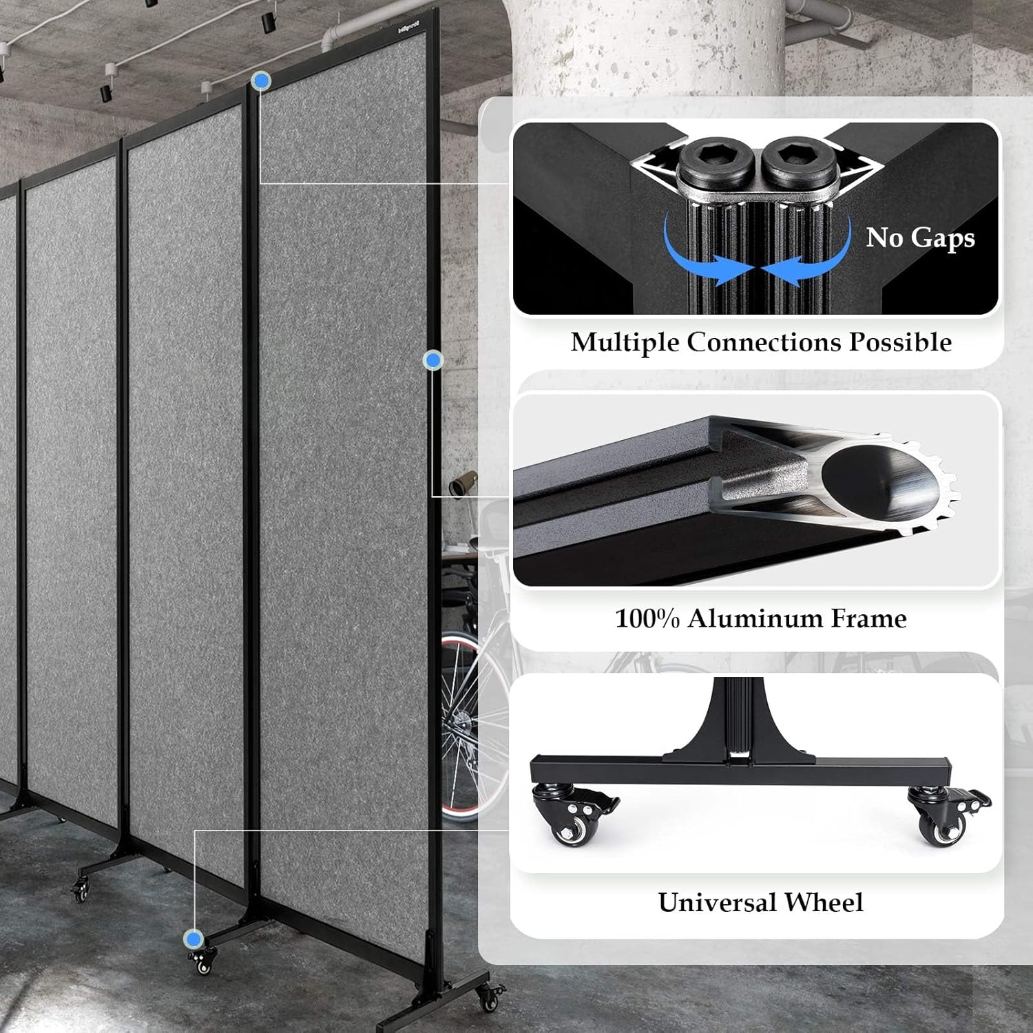 Upgrade Version Room Partition and Divider, Freestanding Rolling Dividers with Wheels,Office Privacy Screen Divider Wall,Classroom Felt Dividers,10'6"L* 6'7"H,5 Panel,Light Grey