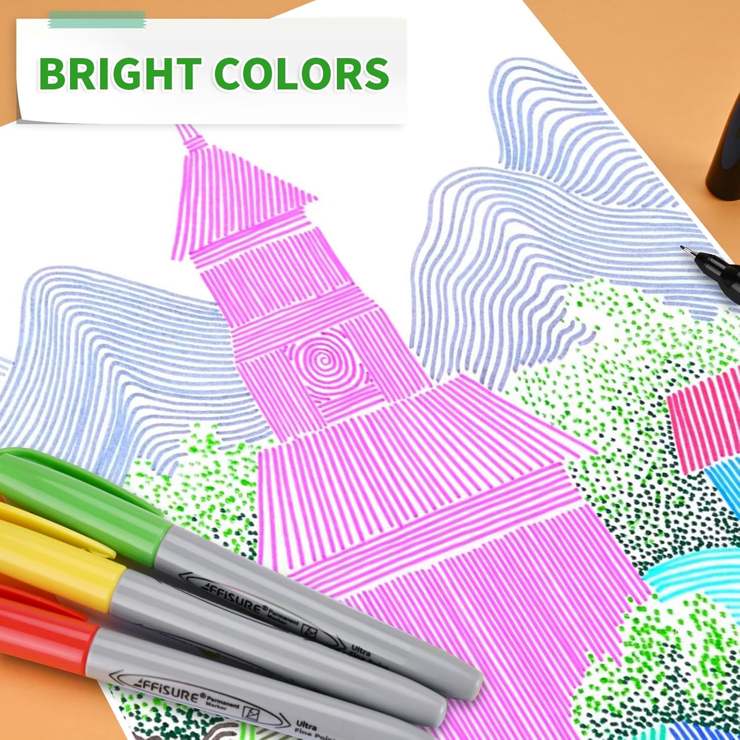 - MULTICOLOR: With a wide range of rich, vibrant colors ink of these ultra fine tip markers, it will bring your creations to life.