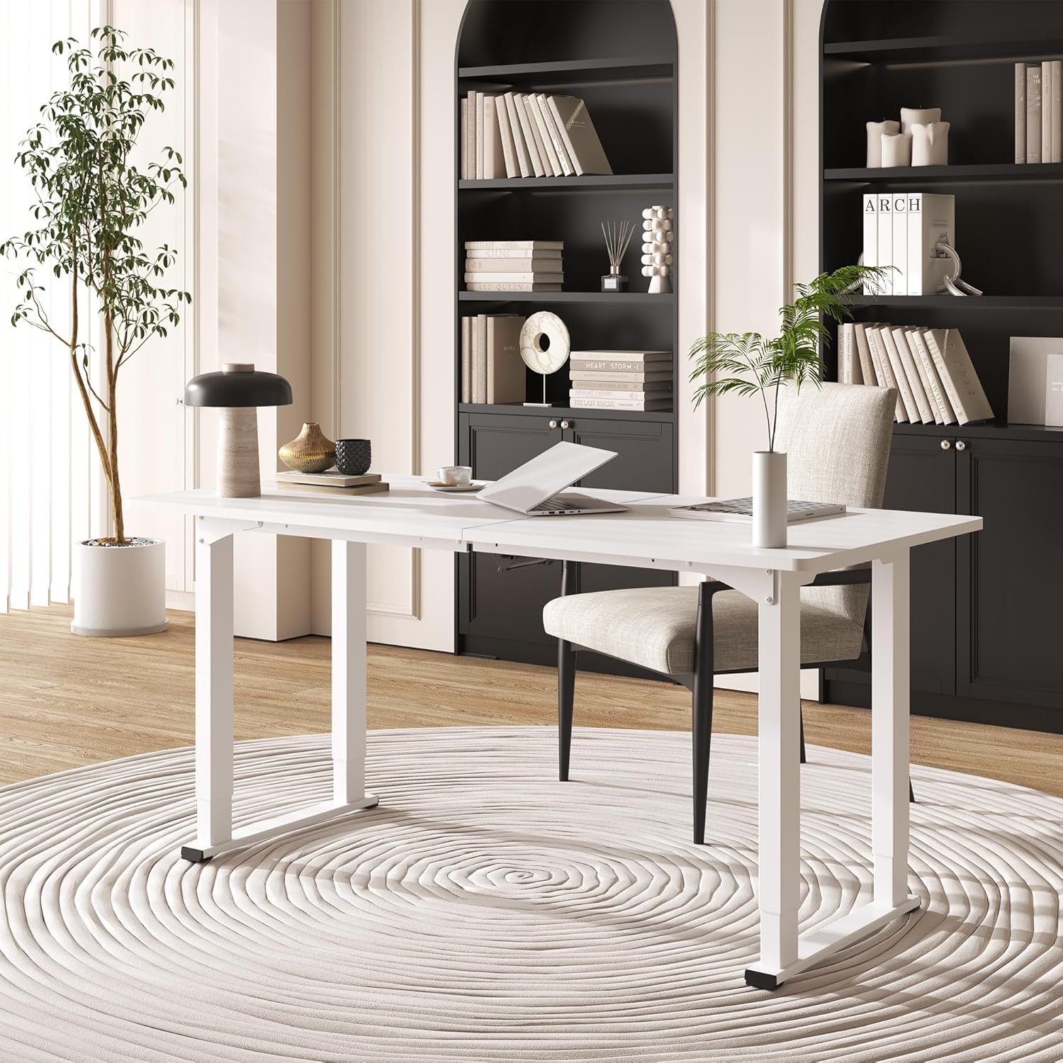 4 Legs Standing Desk, Large 55x28 Inches Electric Adjustable Height Desks with Splice Board, Stand Up Desks Home Office Computer Workstation, White