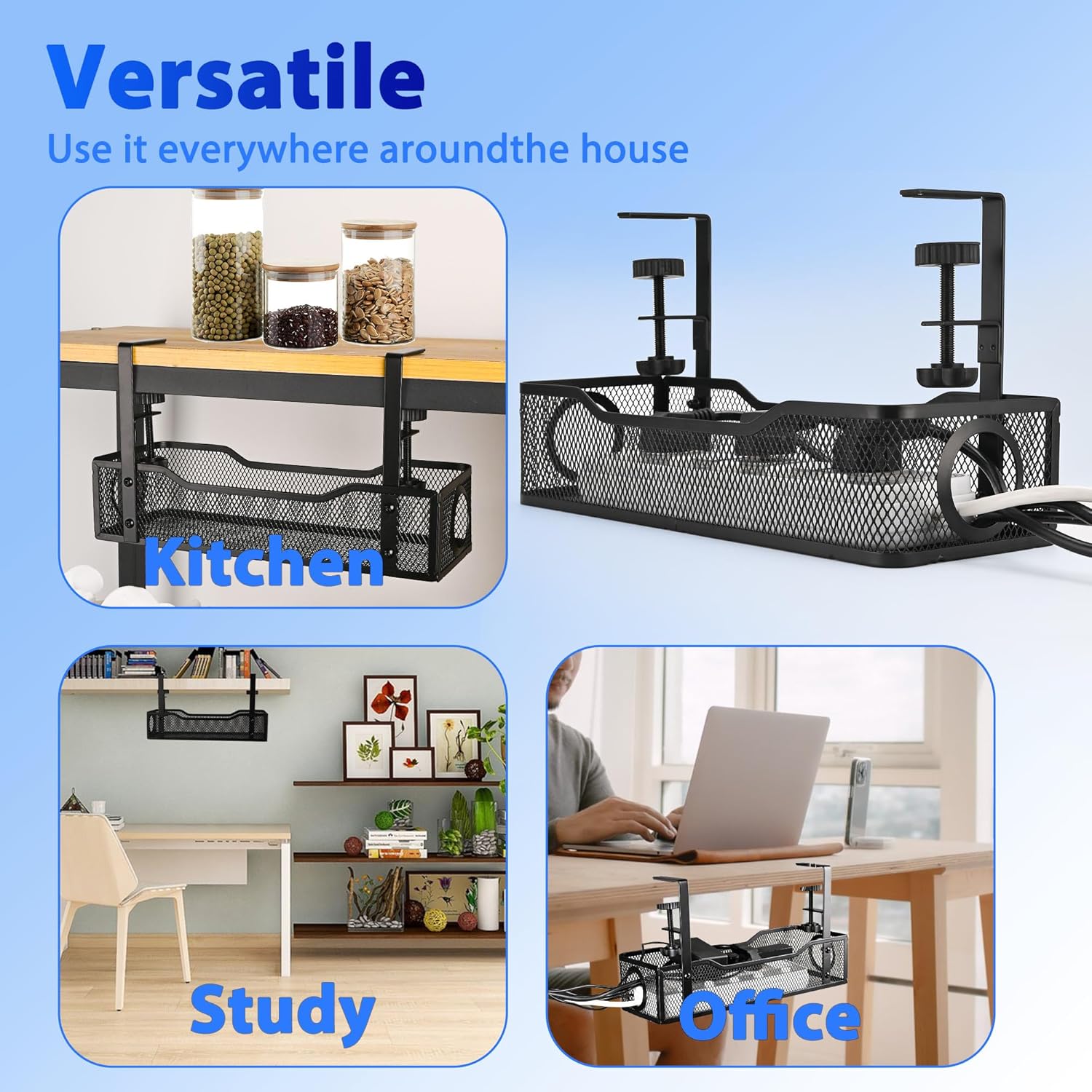 - No Drilling Required – Easy and Damage-Free Installation - The cable management tray features an innovative no-drill design with sturdy clamps, allowing for effortless attachment under your desk. It fits desks within 0.4" to 2.2" thick, so you can securely install it without the need for tools or causing any damage to your desk surface. It’s the perfect under-desk cable management solution for anyone looking to organize their workspace quickly and efficiently.