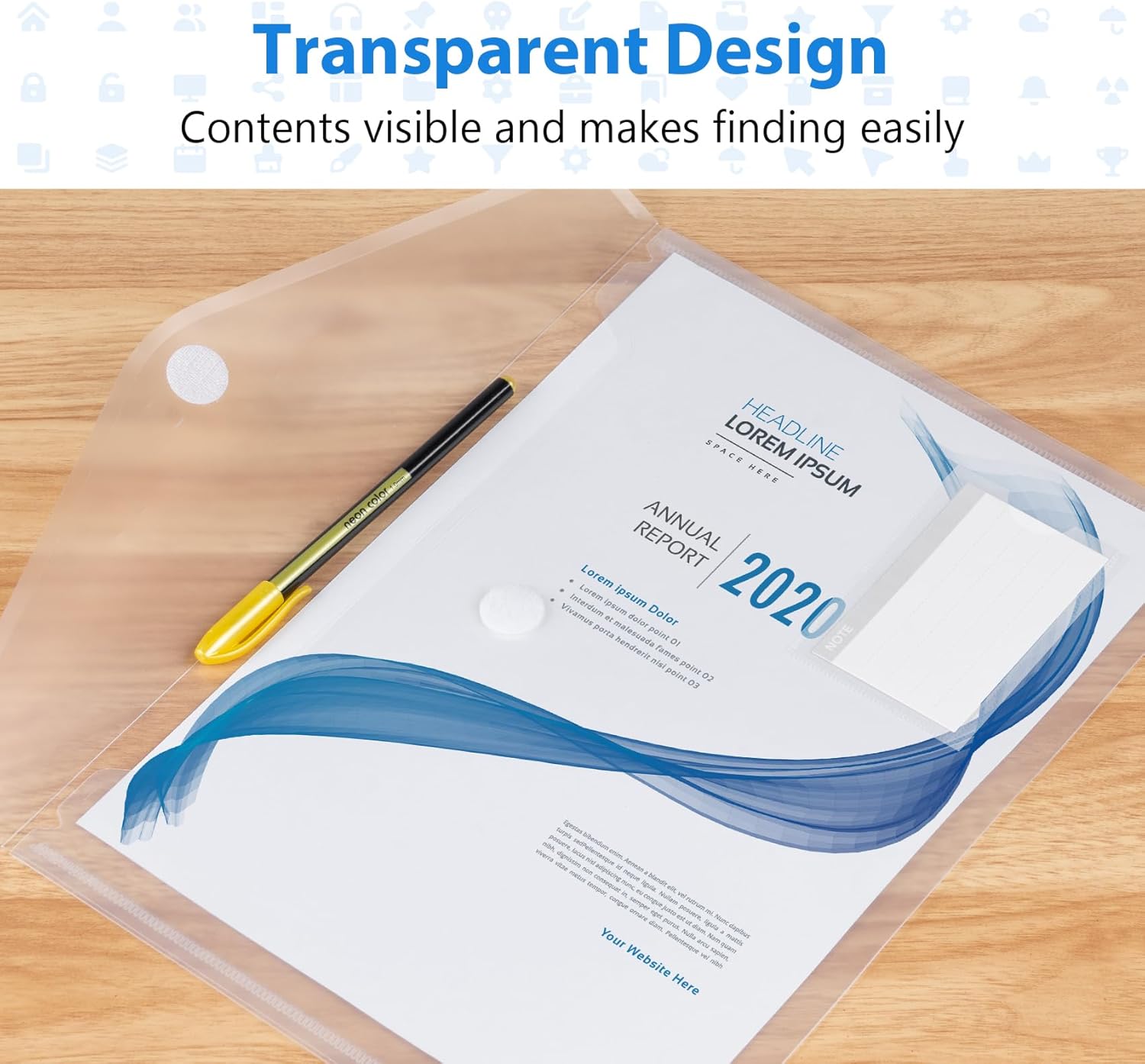 - Easy Storage - Perfect for storing US letter / A4 size paper, bills, documents, stationery and other small items storage. The poly envelop folders can be used at school, home, work, office, travel.