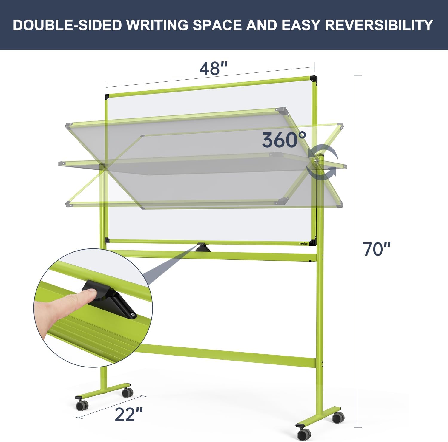 - 360Β° ROTATED & LOCKABLE - The dry erase board comes with 4 sturdy universal wheels that support 360Β° rotation. Each wheel has a locking system to keep it stable while writing and wiping.