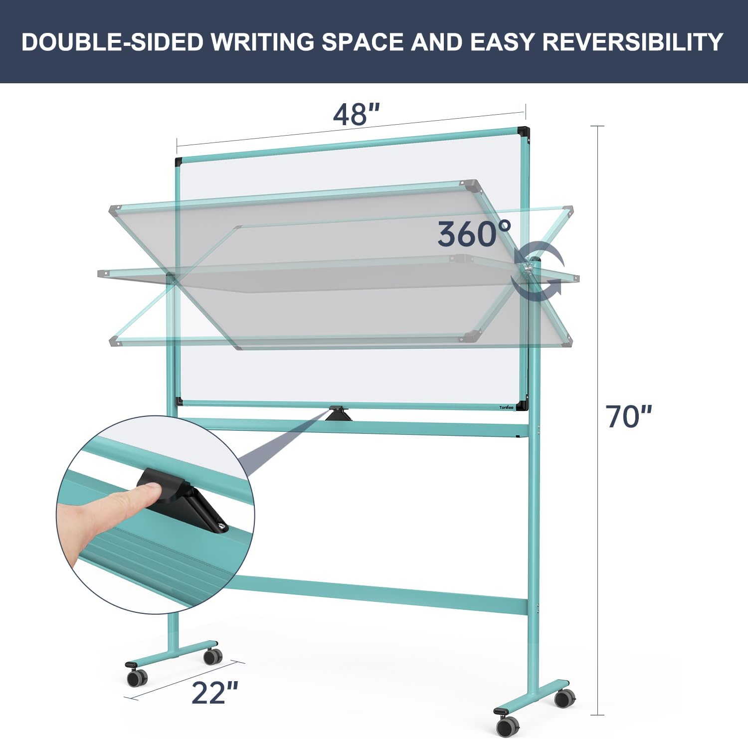 - 360Β° ROTATED & LOCKABLE - The dry erase board comes with 4 sturdy universal wheels that support 360Β° rotation. Each wheel has a locking system to keep it stable while writing and wiping.