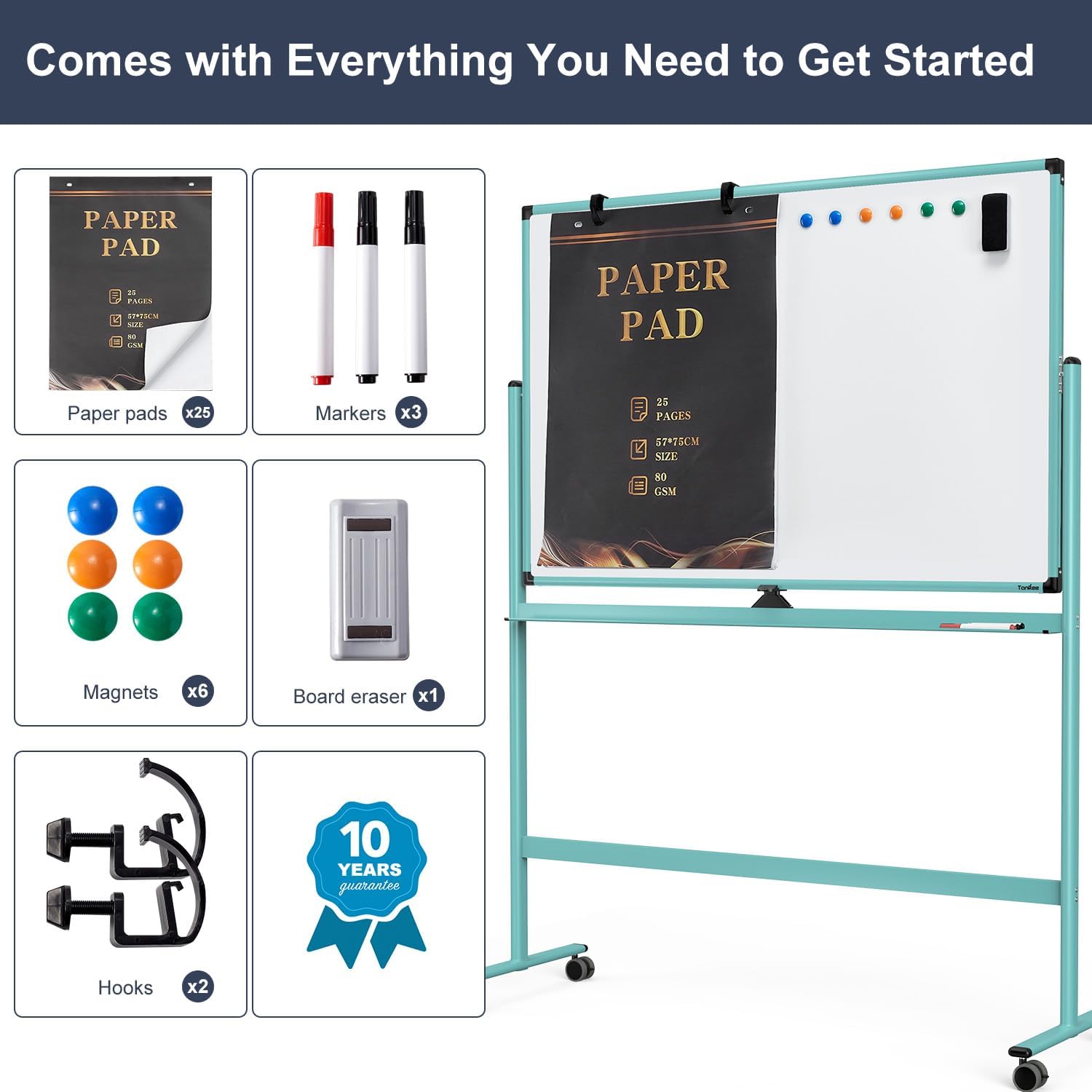 - DOUBLE-SIDED DESIGN - The double-sided whiteboard gives you plenty of writing space, while the board stopper ensures that the mobile whiteboard stays firmly in place during use, preventing it from moving or wobbling.
