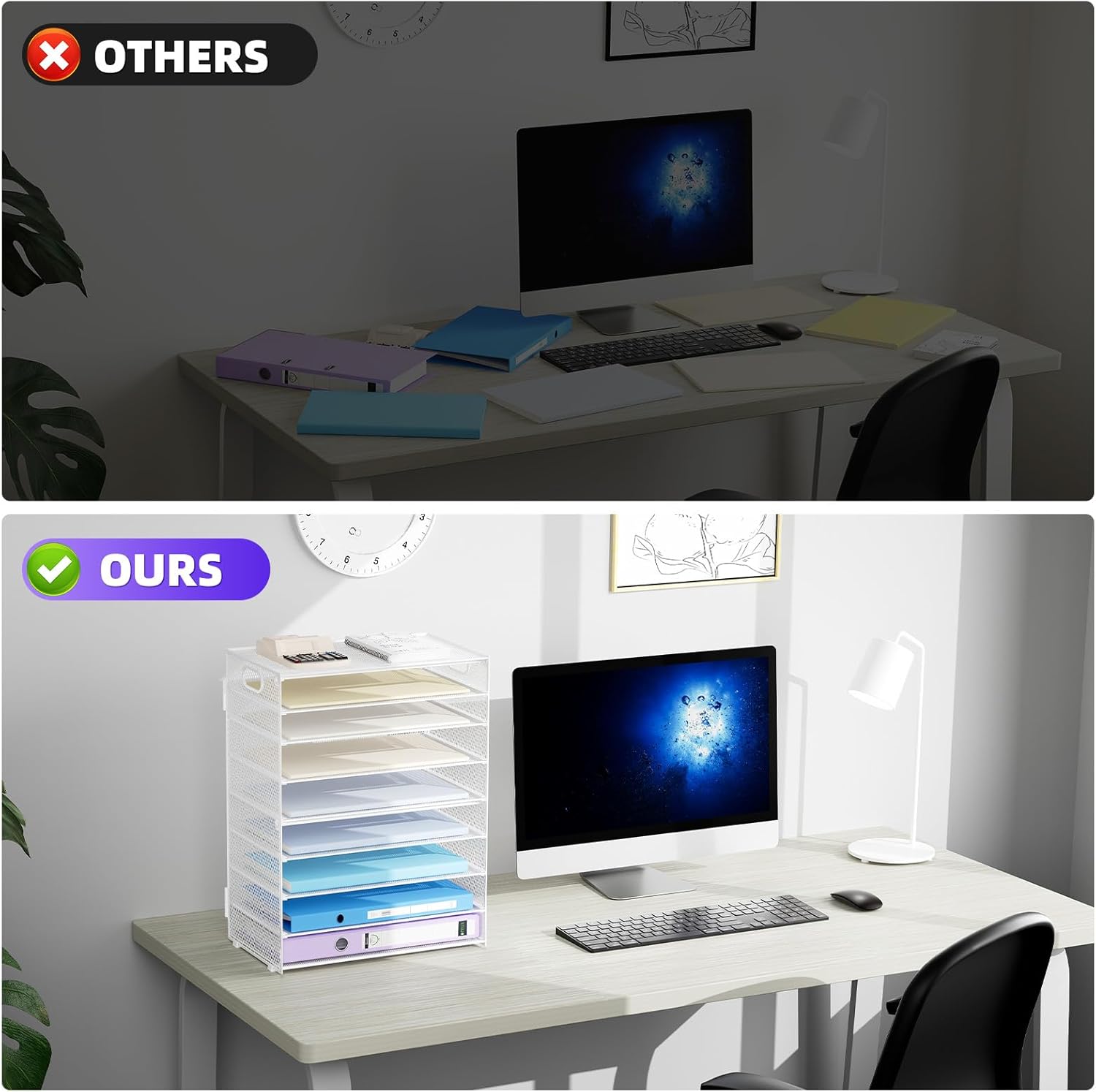 - 【PREMIUM QUALITY】The mesh desktop file organizer is made of lightweight durable metal mesh and reinforced with a solid steel frame that makes it have long-lasting strength and reliable performance.