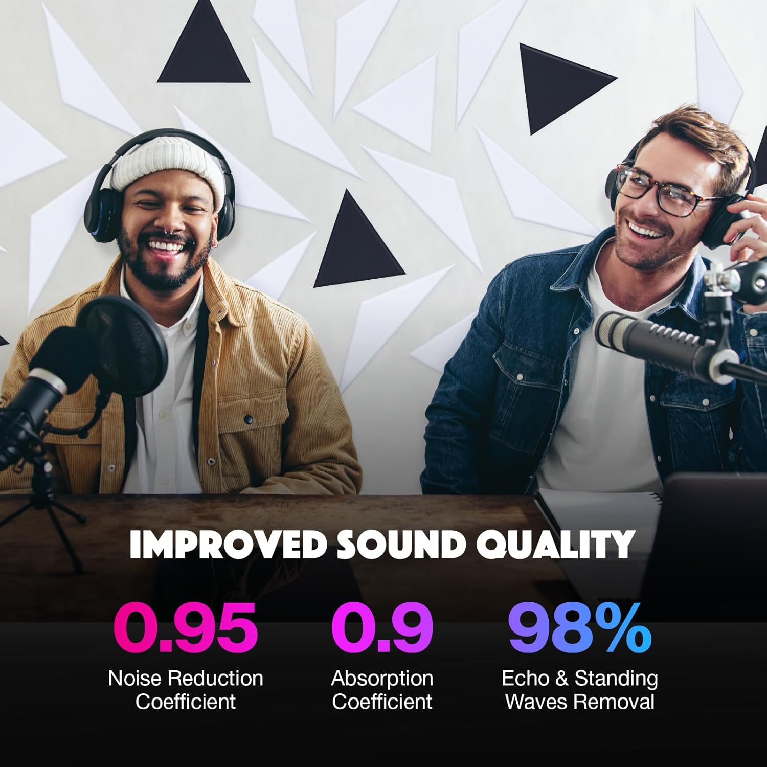 - Excellent Quality:This soundproof wall panels is made of high-density polyester fiber. Our sound-absorbing foam panels has the characteristics of sound insulation, flame retardancy, odorlessness, non-toxicity, corrosion resistance, and fade resistance. It can improve sound quality and reduce echoes and reverberation in the home.