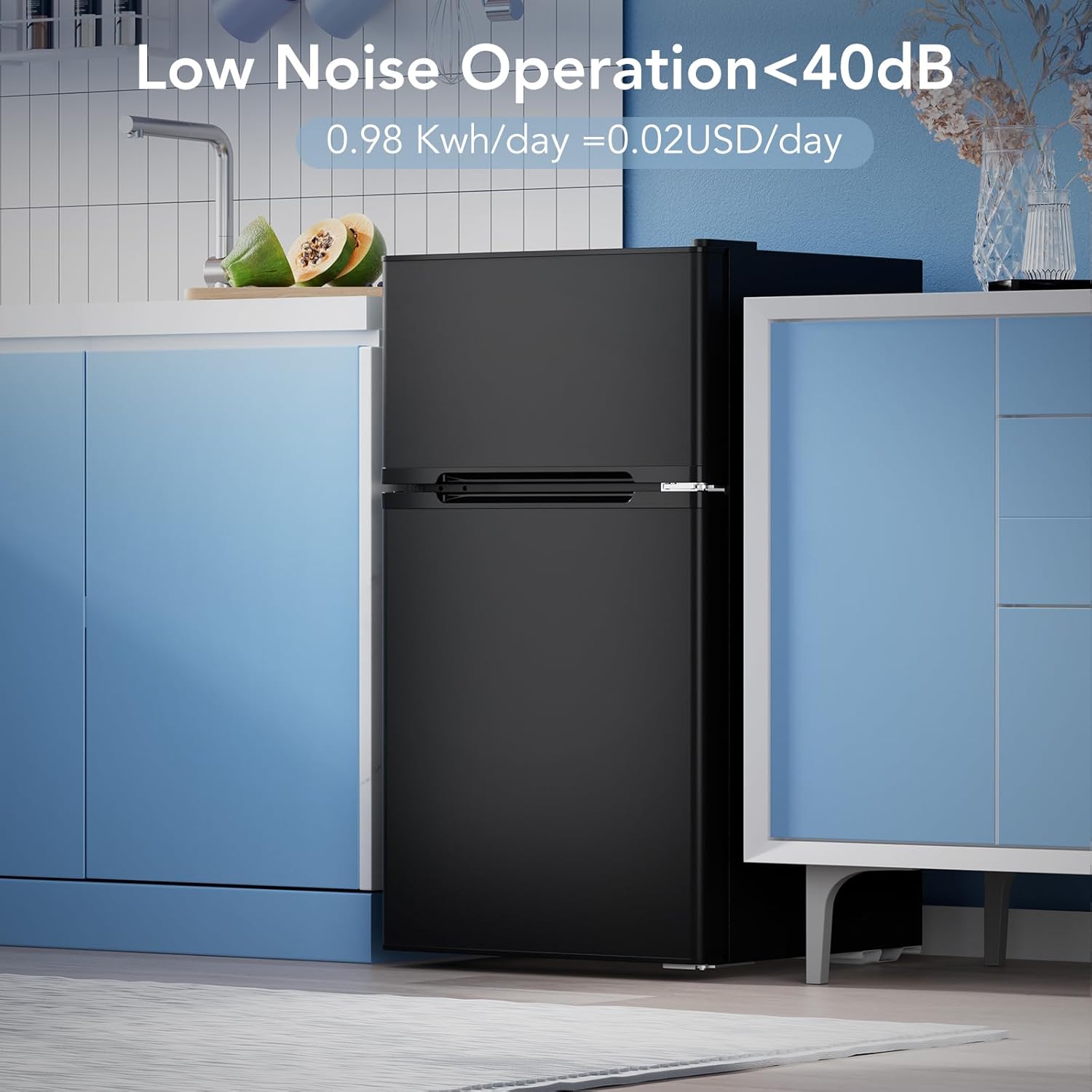 3.1 Cu.Ft Mini Fridge with Freezer, 2 Door Compact Refrigerator, Mini Fridge with Adjustable Removable Glass Shelves for Bedroom, Office, Dorm or Apartment, Black
