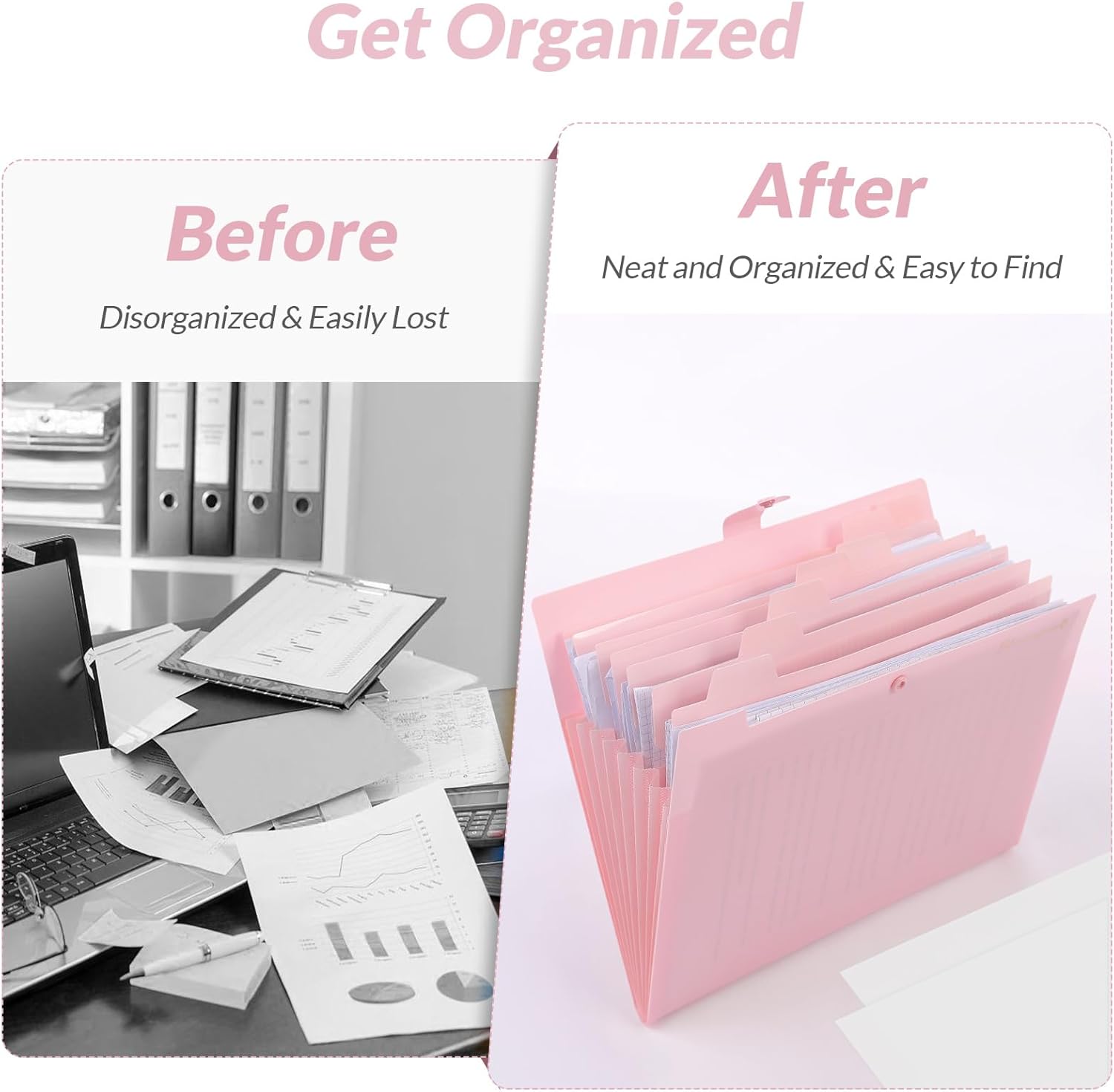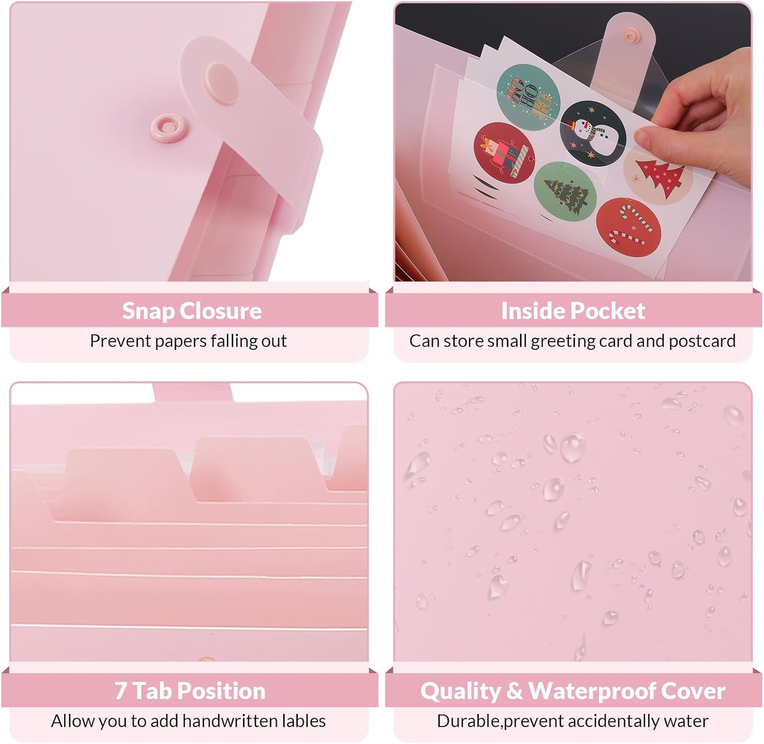 SKYDUE Expanding File Folder, Accordion File Organizer with 8 Pocket & Inner Card Pocket, Expandable Document Paper Receipt Holder for School Office Hospital, Letter/A4 Size Pink
