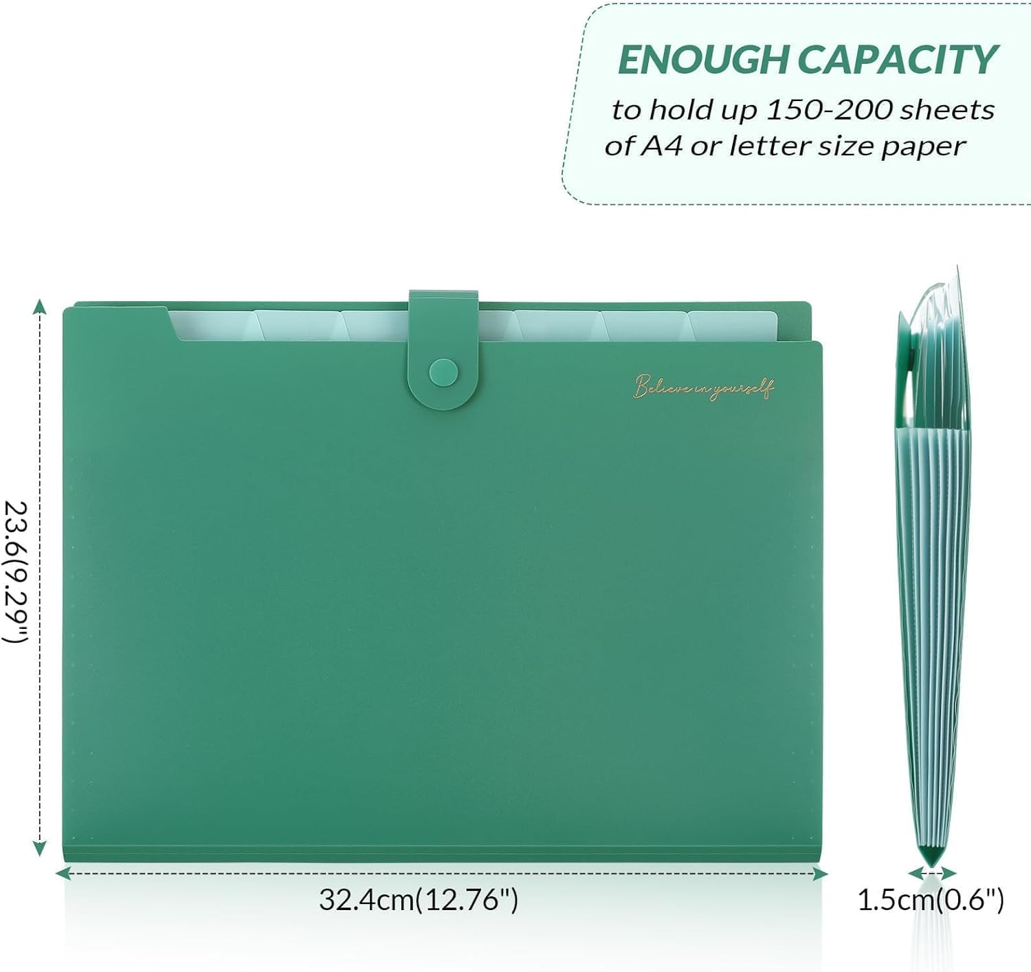 SKYDUE Expanding File Folder, Accordion File Organizer with 8 Pocket & Inner Card Pocket, Expandable Document Paper Receipt Holder for School Office Hospital, Letter/A4 Size Green