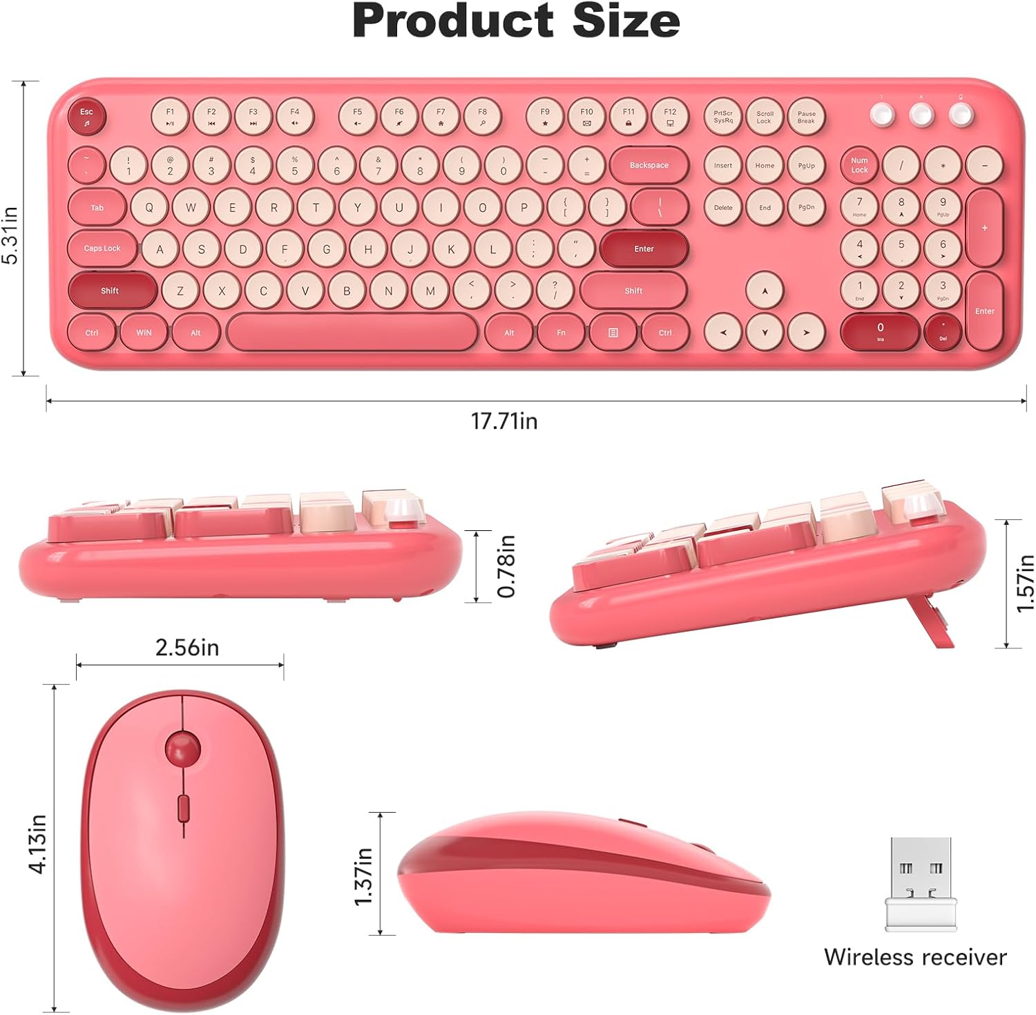 MOFII Wireless Keyboard and Mouse, Retro Typewriter Keyboard and Silent Mouse, 2.4GHz Full Size Keyboard and Mouse Wireless Combo for Laptop, PC, Desktop, Windows (Hot Pink)