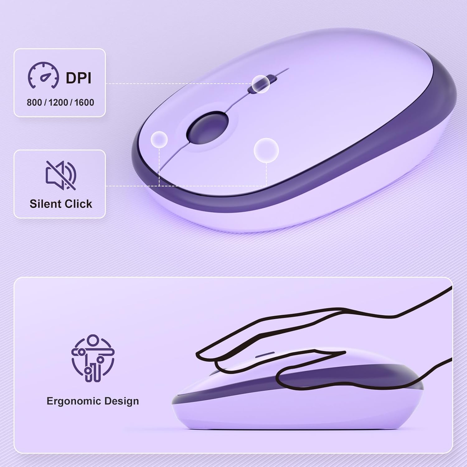 - Reliable 2.4G Wireless, Plug & Play: Experience stable, interference-free wireless connectivity up to 33 feet (10 meters). Simply plug in the USB receiver (conveniently stored inside the mouse) and you're ready to goβno setup required.