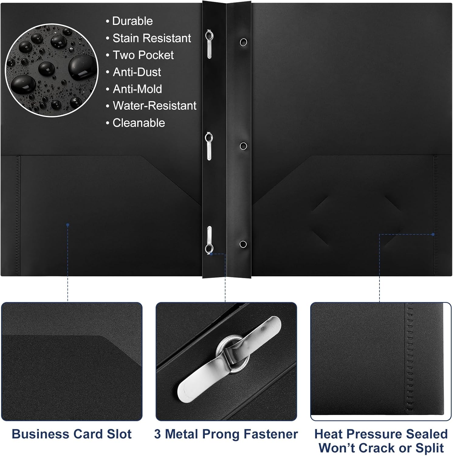- Stay Organized with Ease: the folders offer 2 pockets and 3 prong fasteners for convenient organization of documents; They are suitable for keeping important papers and files organized at office or home; The business card slot also helps to keep important contacts handy