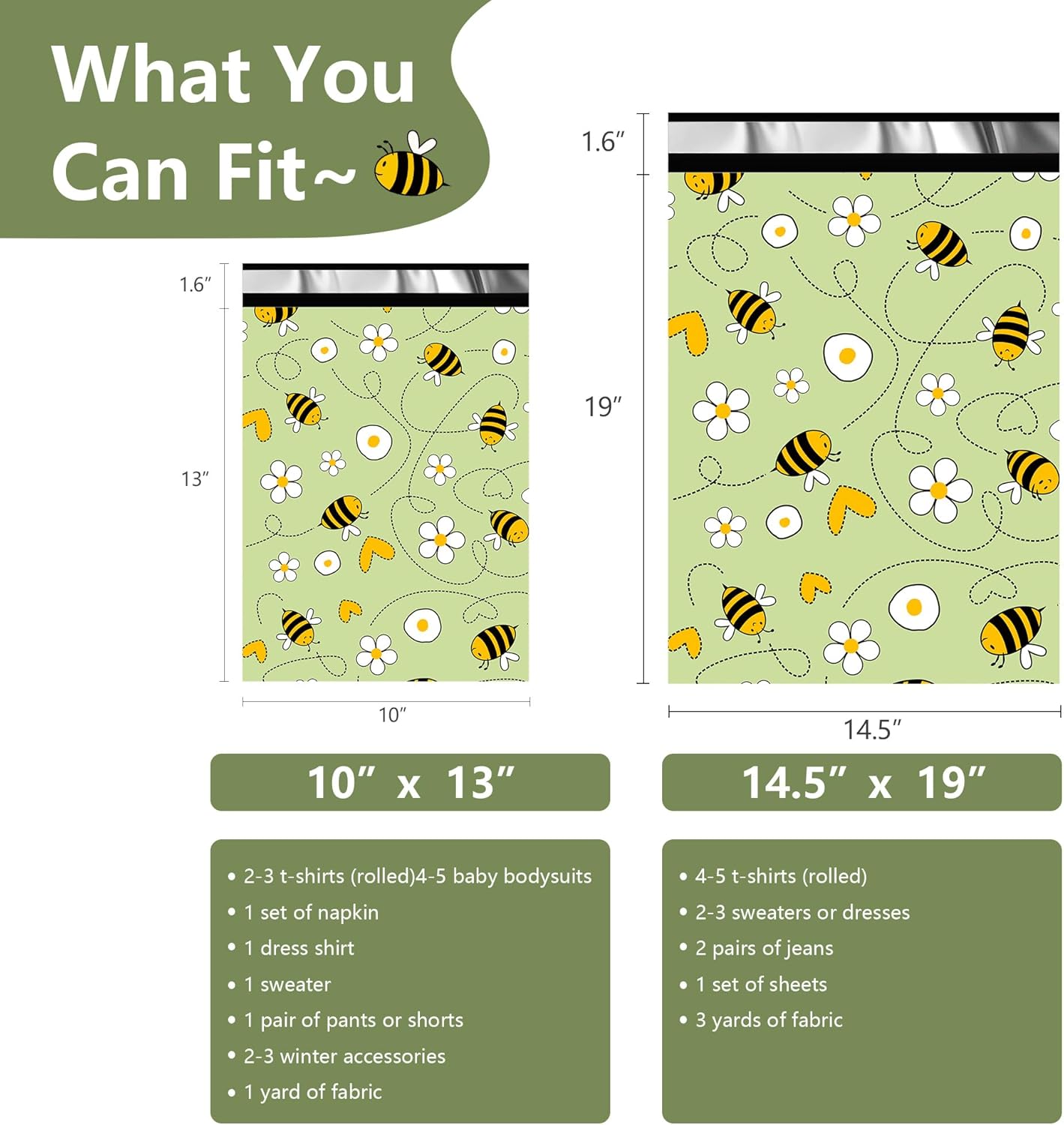 Poly Mailers 14.5x19 Inch 50 Pcs - Bee printed Shipping Bags, 2.4mil Thickness, Waterproof and Tear Resistant Mailing Envelopes, Self-Sealing Packaging Bags for Small Business