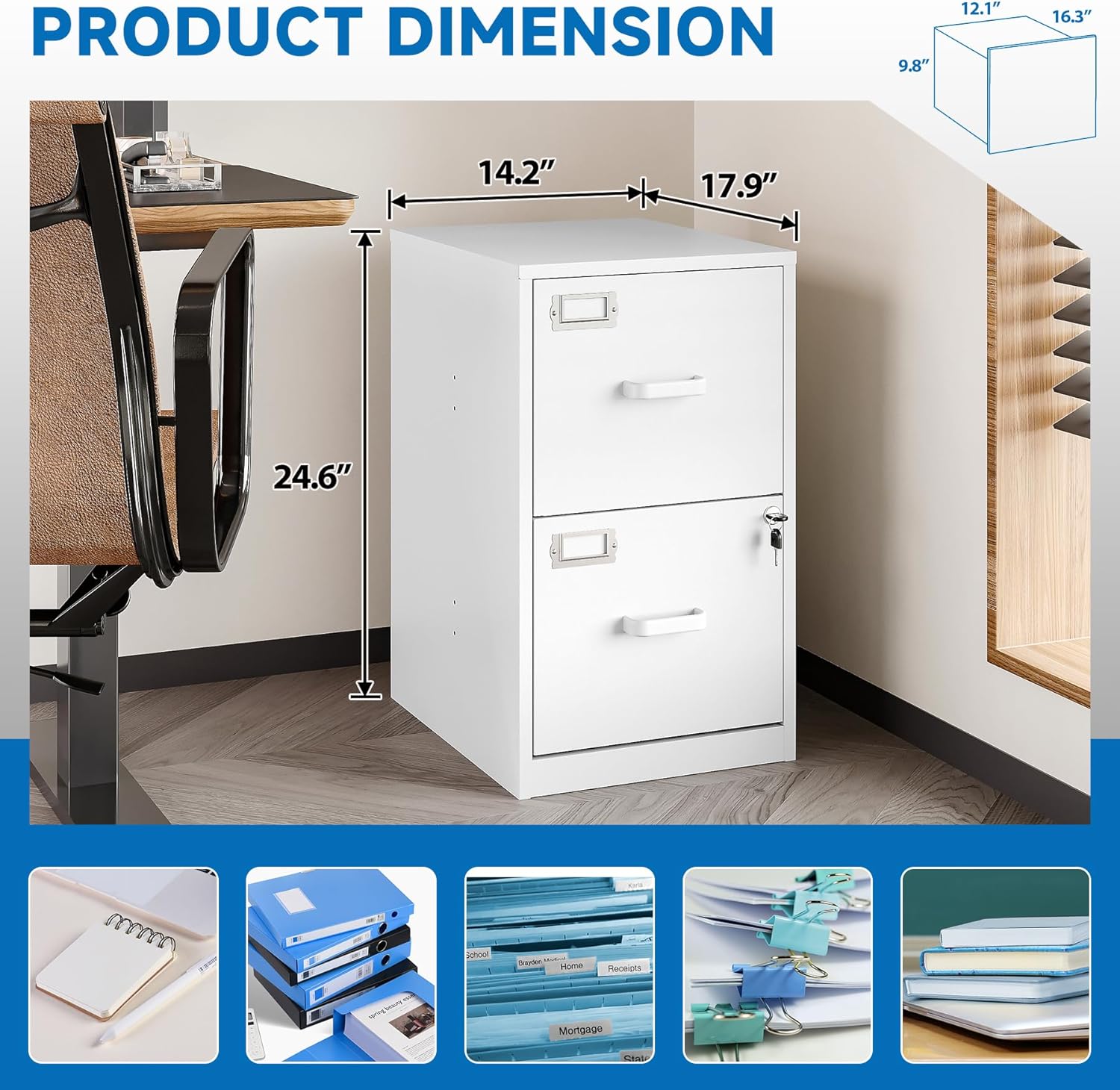 2 Drawer File Cabinet with Lock Vertical Filing Storage Office Home Steel Vertical File Cabinets for Letter Size File Cabinet Locked,Assembly Required