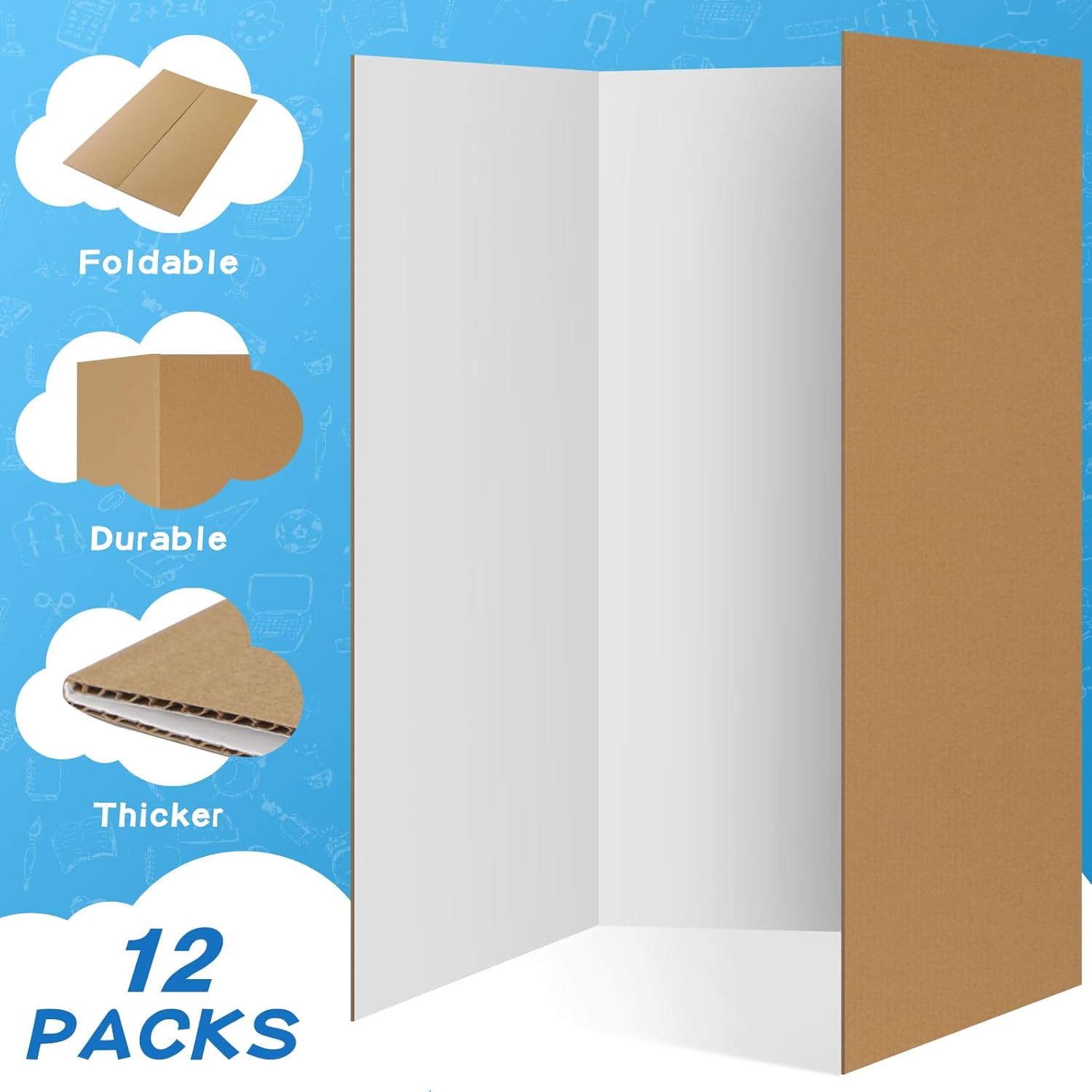 - High Quality Materials: Our three trifold poster board made of thickened five layer corrugated paper, thick and solid, not easy to break, solid and durable, placed on the table stable non-slip, easy to use